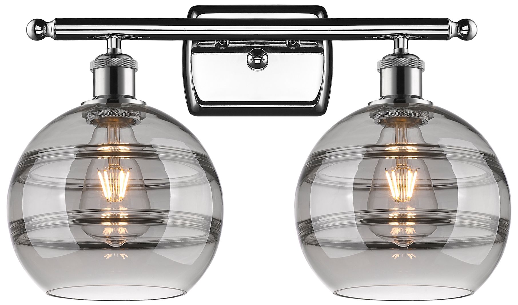 Ballston Rochester 18"W 2 Light Chrome Bath Light w/ Light Smoke Shade