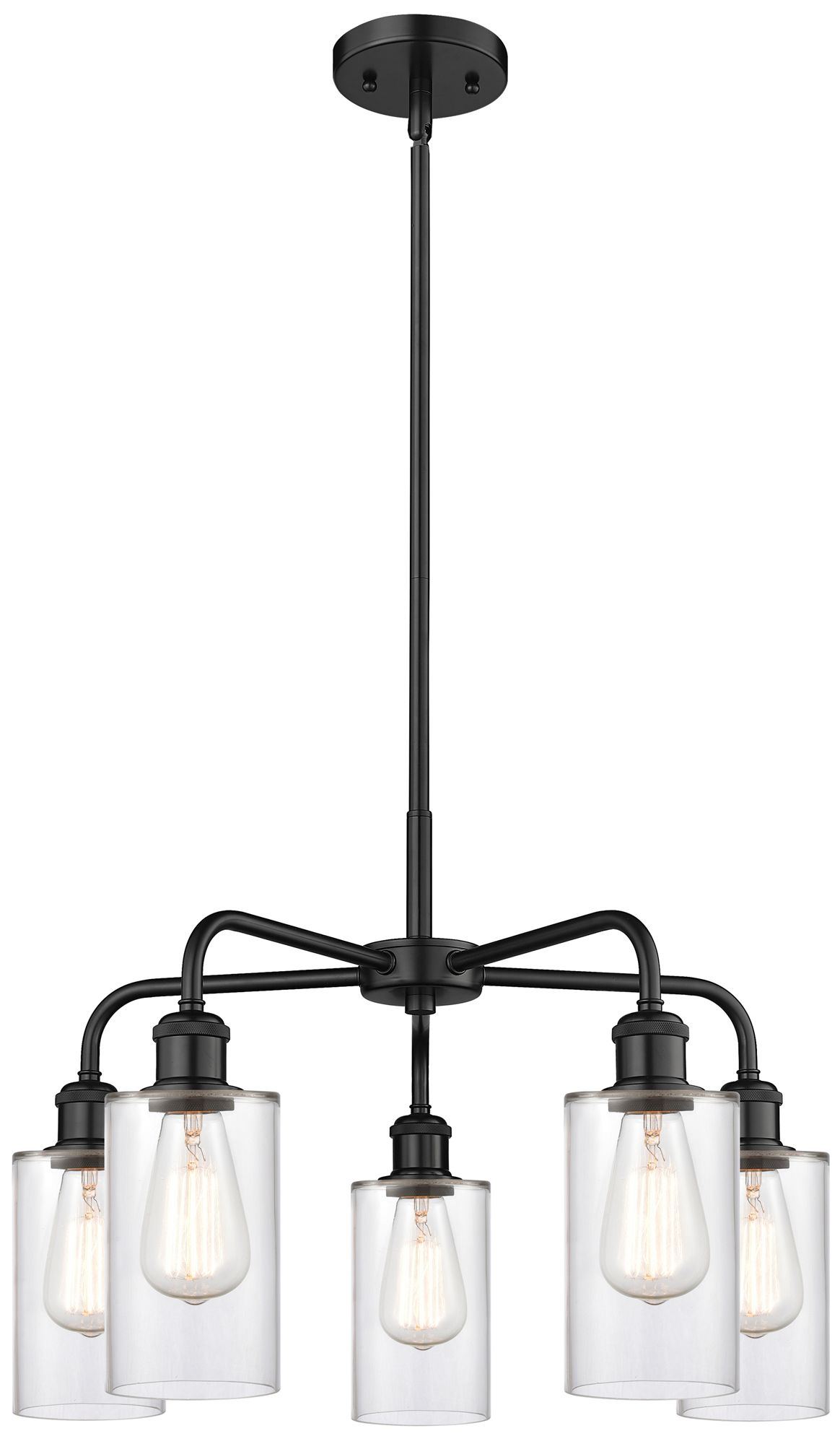 Clymer 21.88"W 5 Light Matte Black Stem Hung Chandelier With Clear Sha