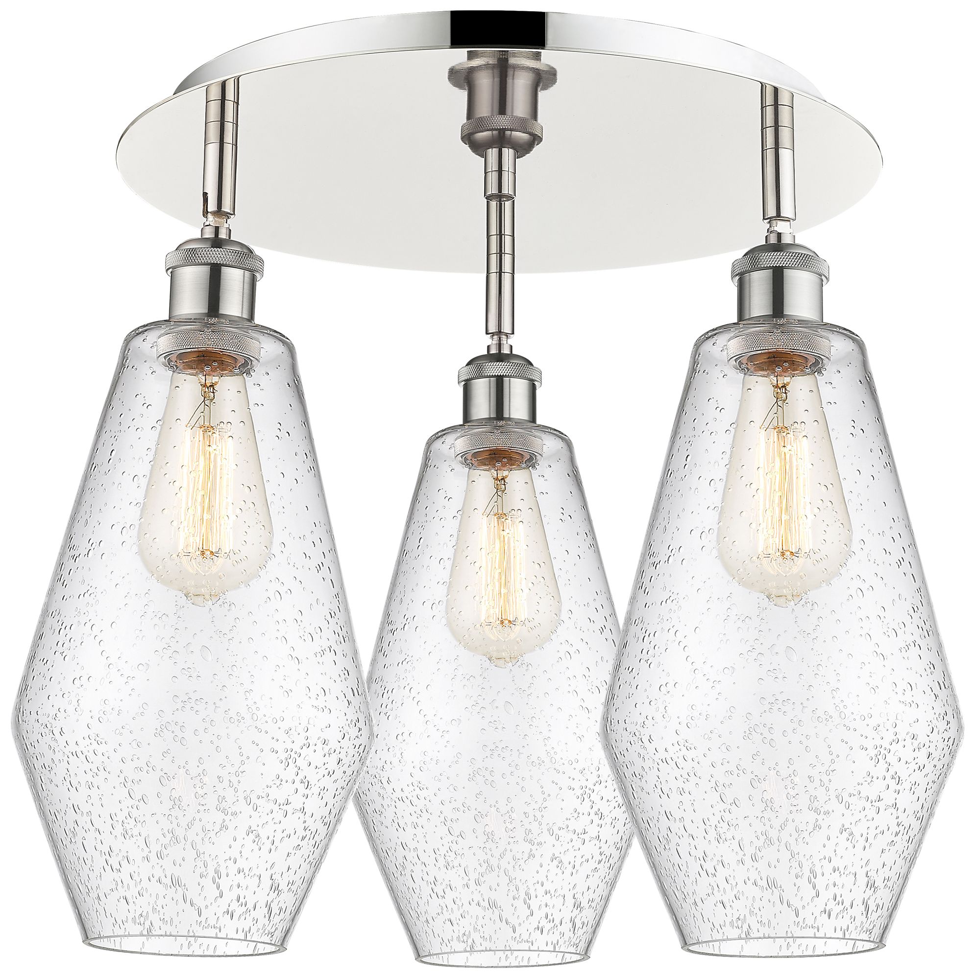 Cindyrella 18.75"W 3 Light Polished Nickel Flush Mount w/ Seedy Glass
