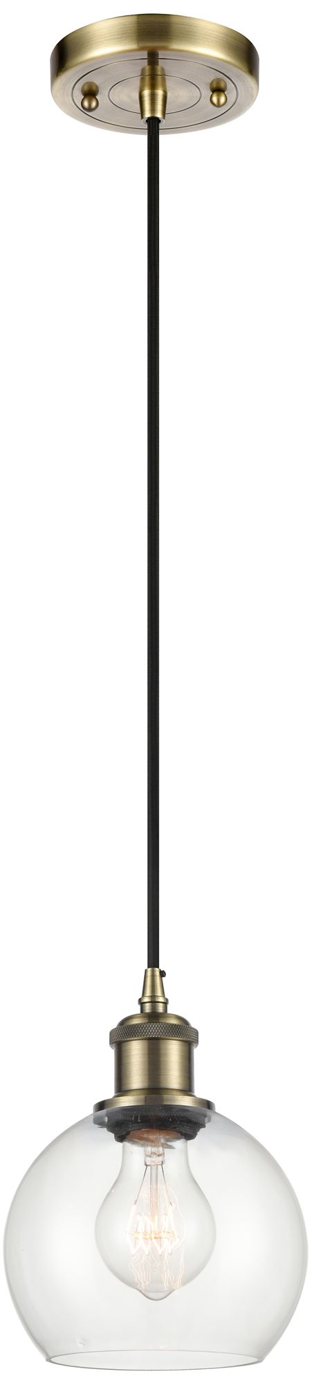 Ballston Athens 6" LED Mini Pendant - Antique Brass - Clear Shade