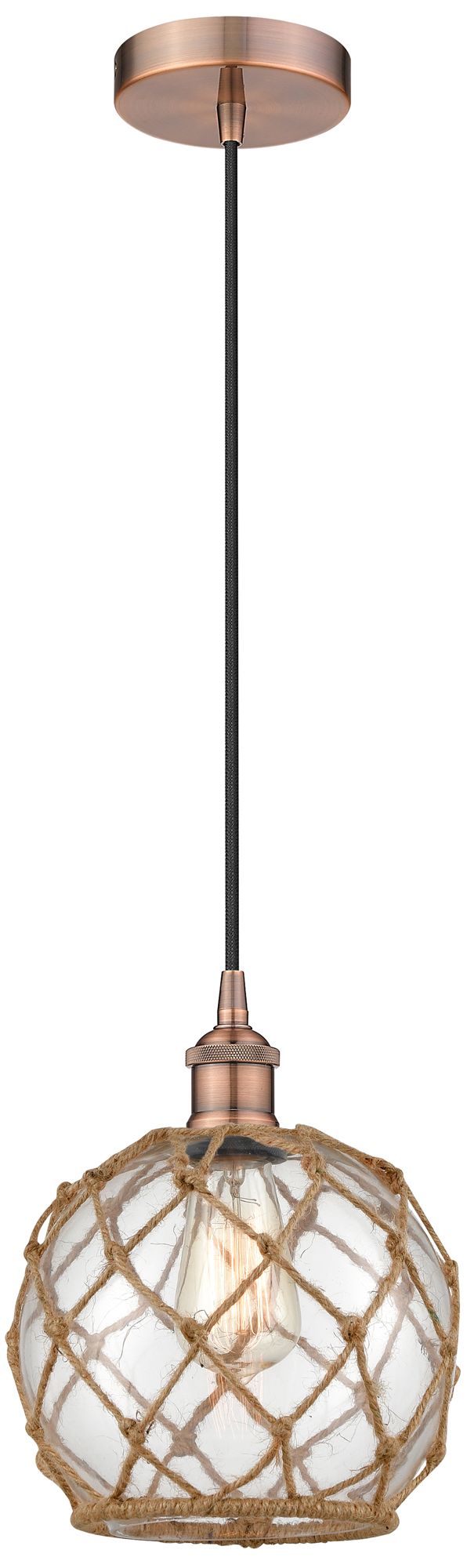 Edison Farmhouse 8" Copper Corded Mini Pendant w/ Clear & Brown Ro