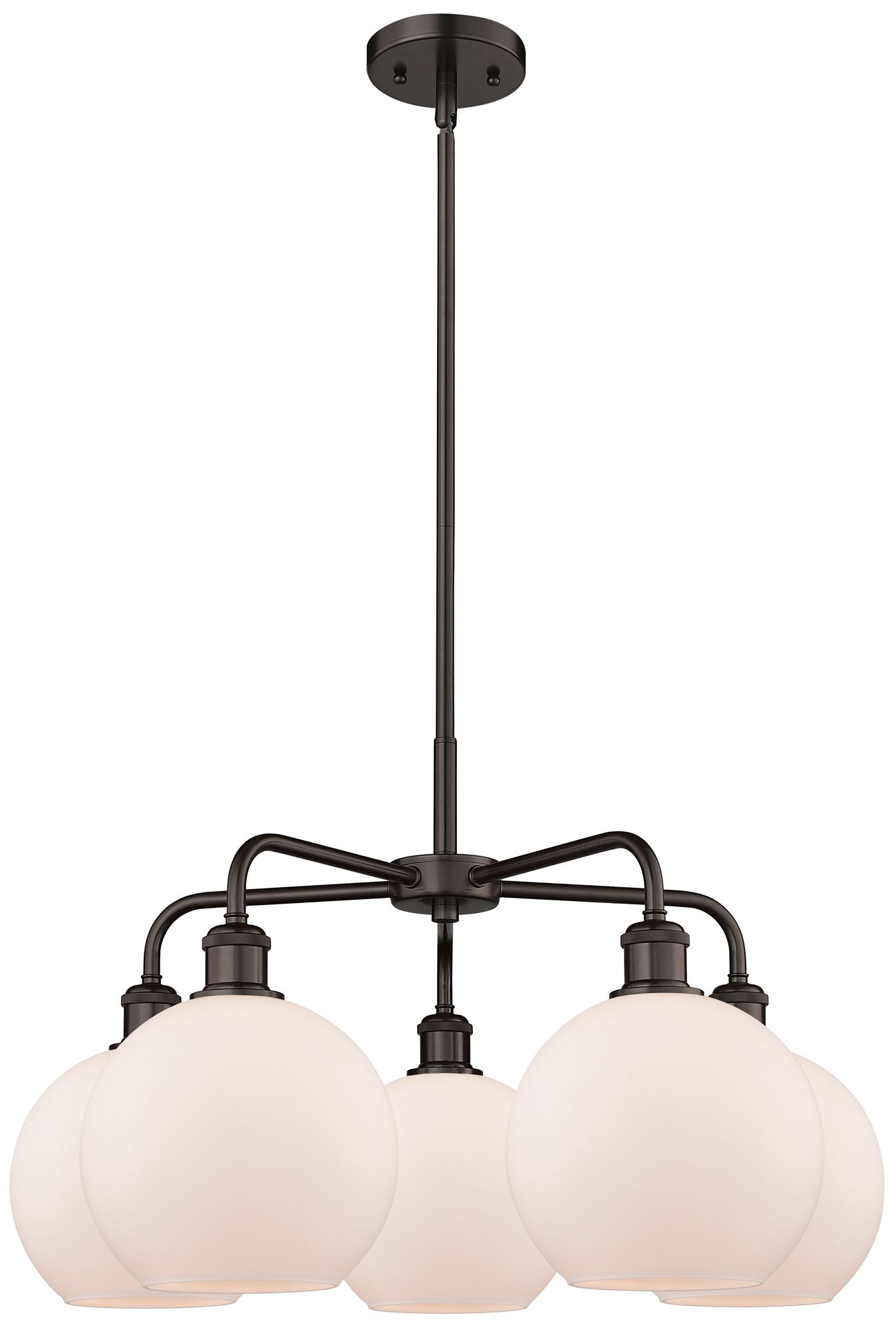Athens 26"W 5 Light Oil Rubbed Bronze Stem Hung Chandelier With White