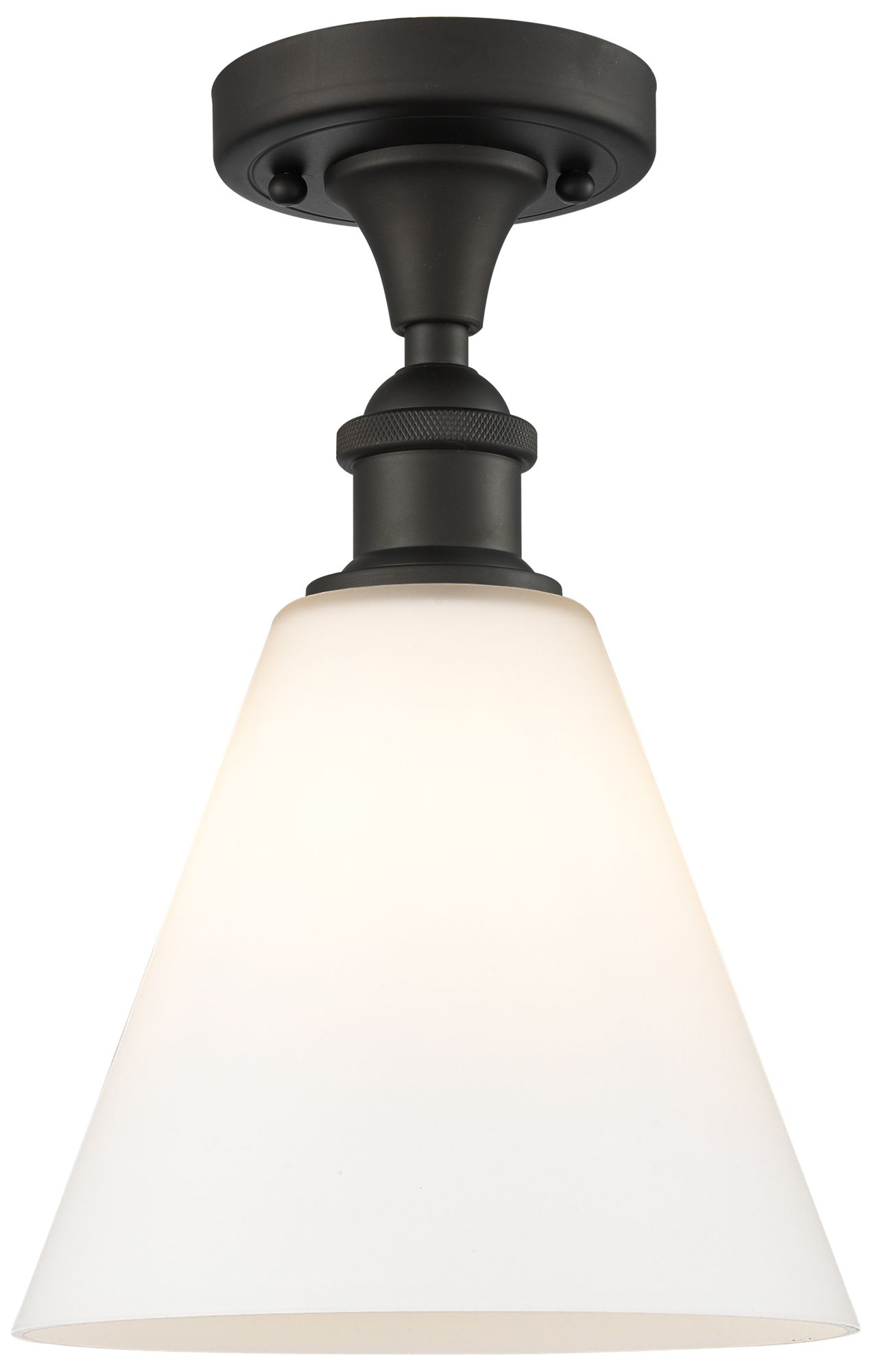 Berkshire Glass 8" Semi-Flush Mount - Oil Rubbed Bronze - Matte White
