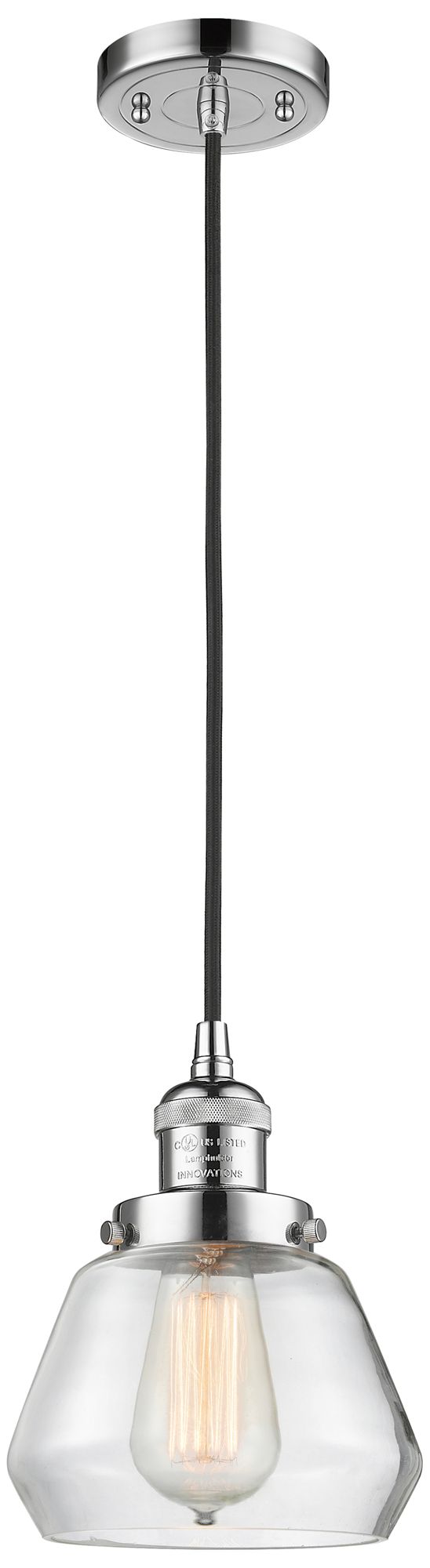 Fulton 7" Polished Chrome Cord Hung Mini Pendant w/ Clear Shade