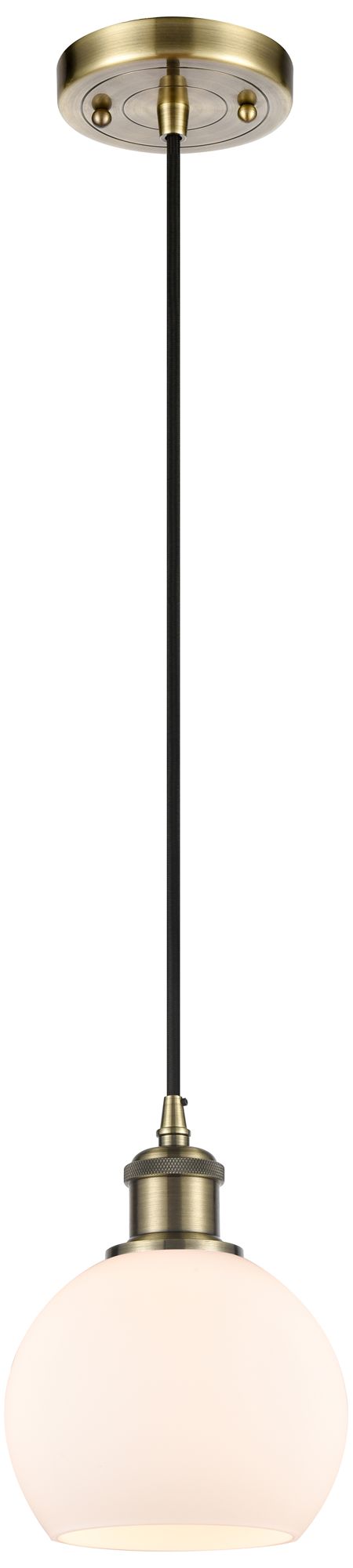 Ballston Athens 6" LED Mini Pendant - Antique Brass - Matte White Shad