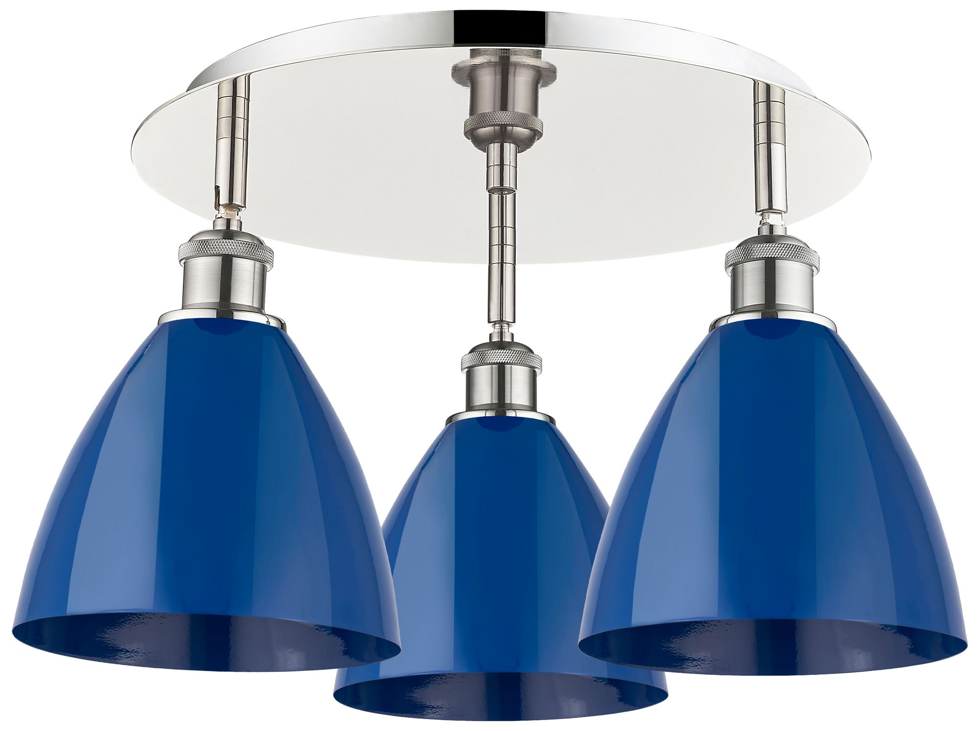 Ballston Dome 19.25"W 3 Light Polished Nickel Flush Mount w/ Blue Shad
