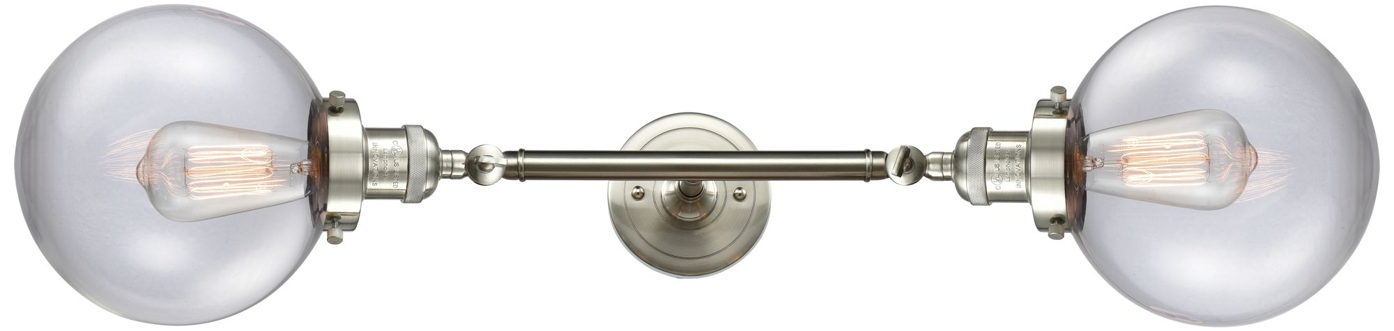 Beacon 8"W 2 Light Brushed Satin Nickel Bath Vanity Light w/ Clear Sha