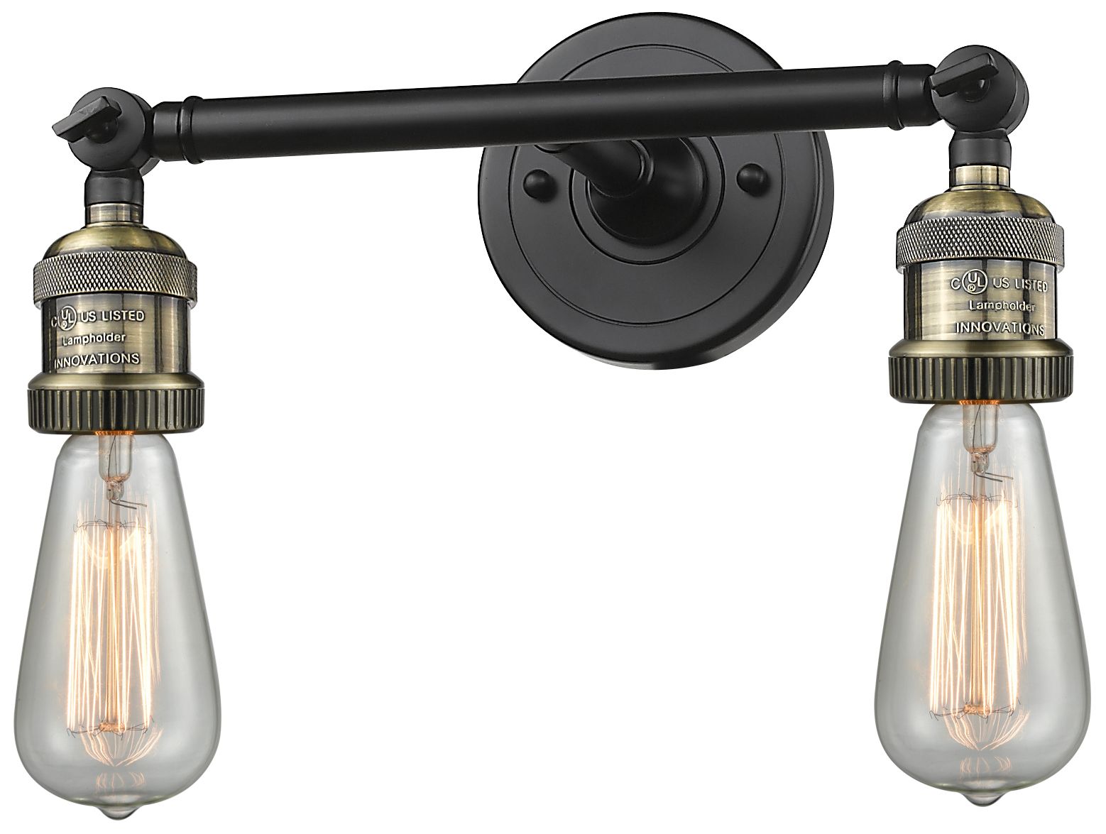 Bare Bulb 11" 2-Light Black Antique Brass Bath Light