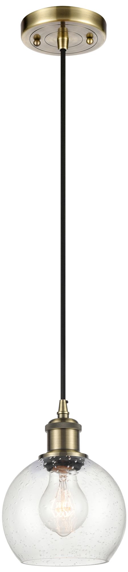 Ballston Athens 6" LED Mini Pendant - Antique Brass - Seedy Shade