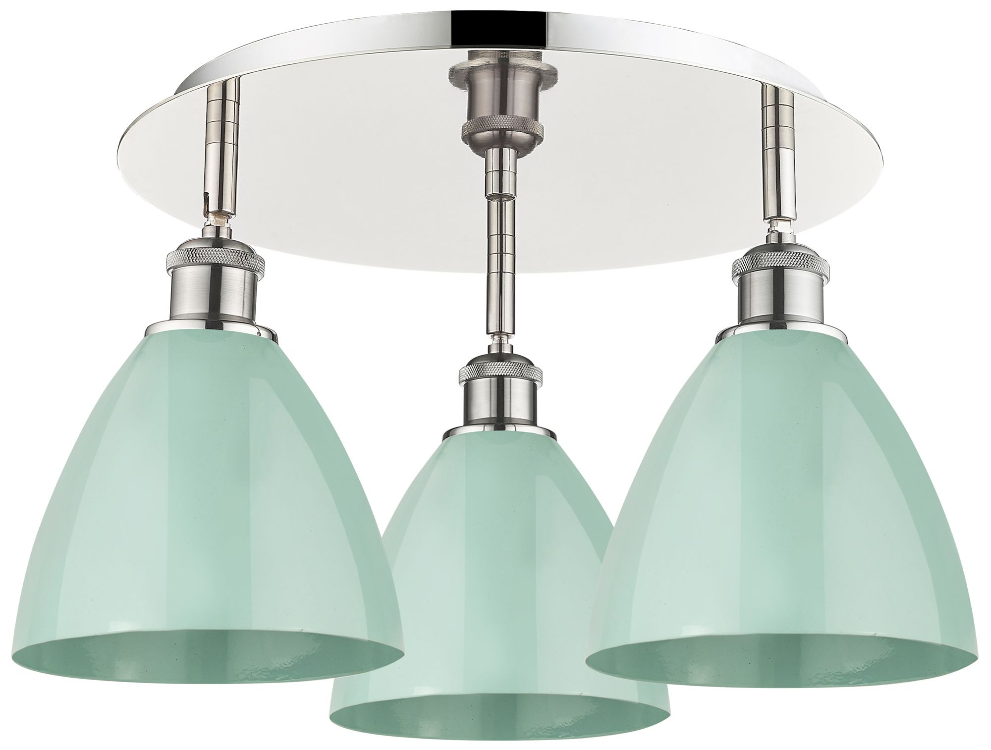 Ballston Dome 19.25"W 3 Light Polished Nickel Flush Mount w/ Seafoam S