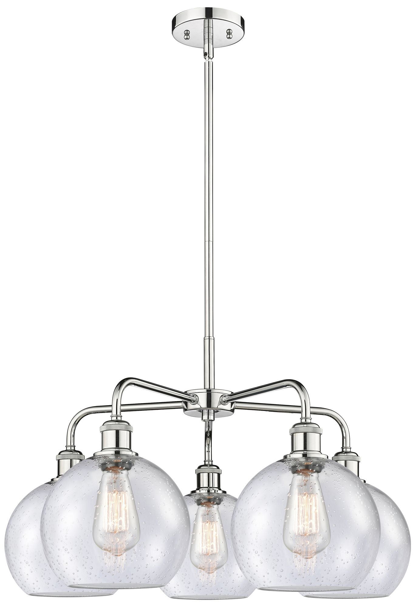 Athens 26"W 5 Light Polished Chrome Stem Hung Chandelier With Seedy Sh