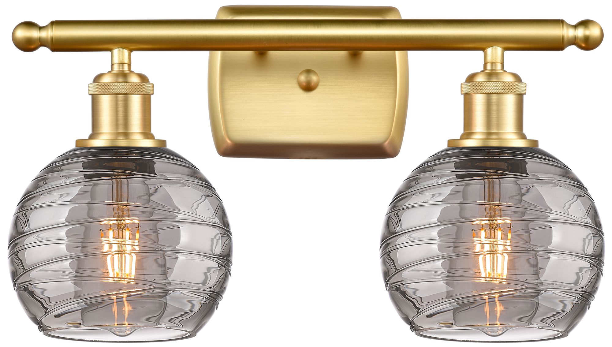 Ballston Athens 15.88"W 2 Light Satin Gold Bath Light w/ Smoke Swirl S