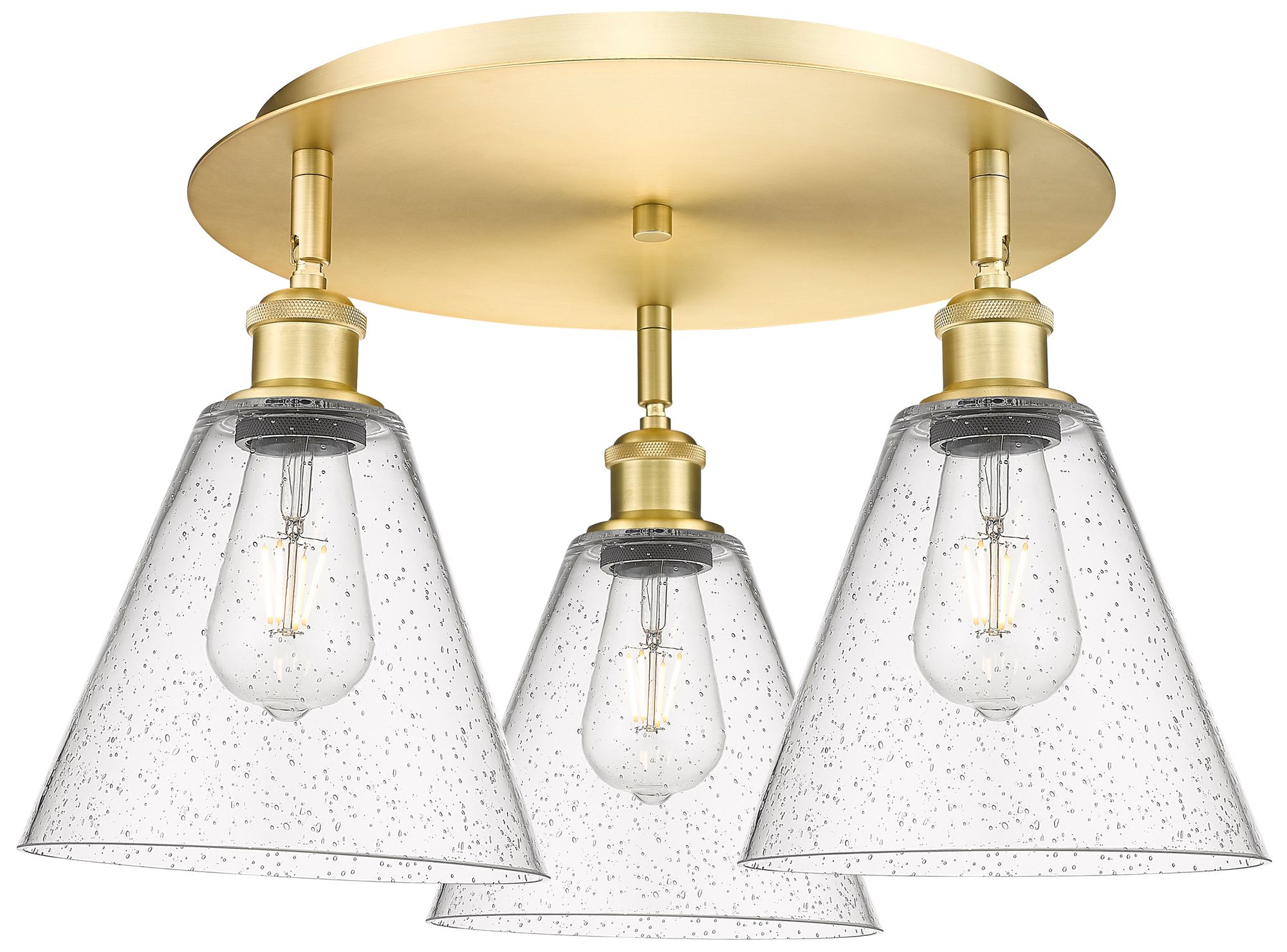 Berkshire 19.75" Wide 3 Light Satin Gold Flush Mount With Seedy Glass