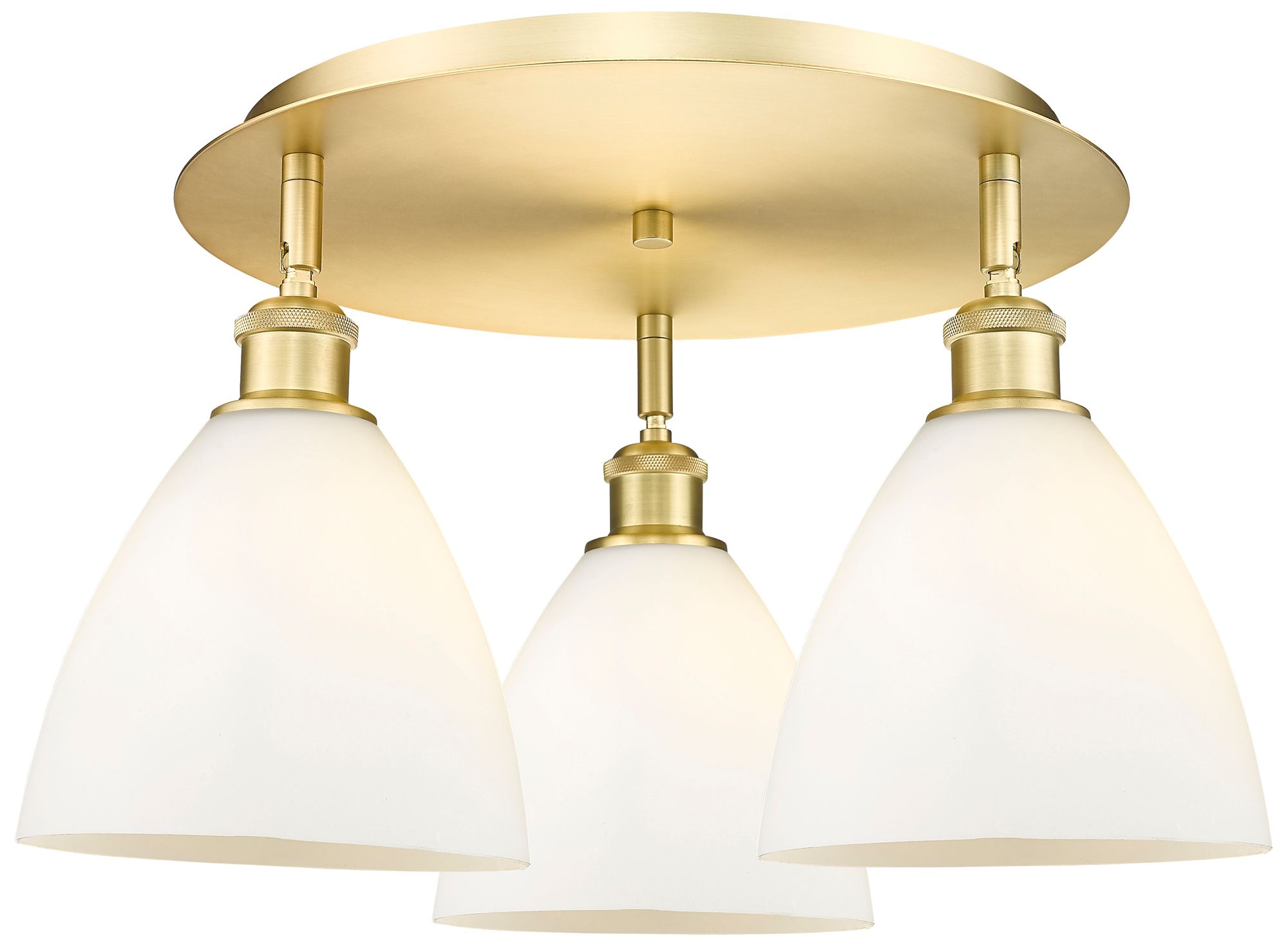 Bristol Glass 19.25"W 3 Light Satin Gold Flush Mount w/ White Shade