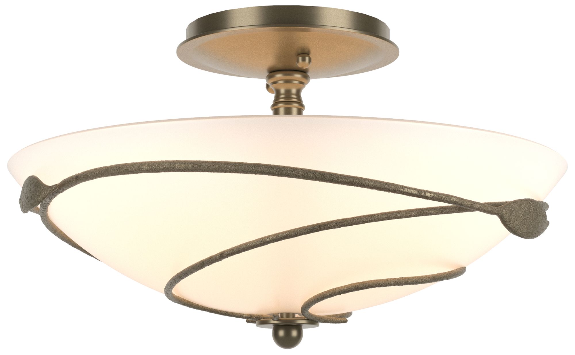 Forged Leaves 13.5" Wide Soft Gold Semi-Flush With Opal Glass Shade
