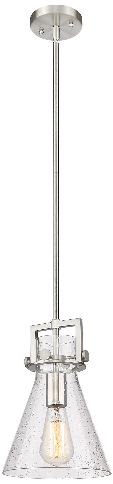 Newton Cone 8" Wide Stem Hung Satin Nickel Pendant With Seedy Shade