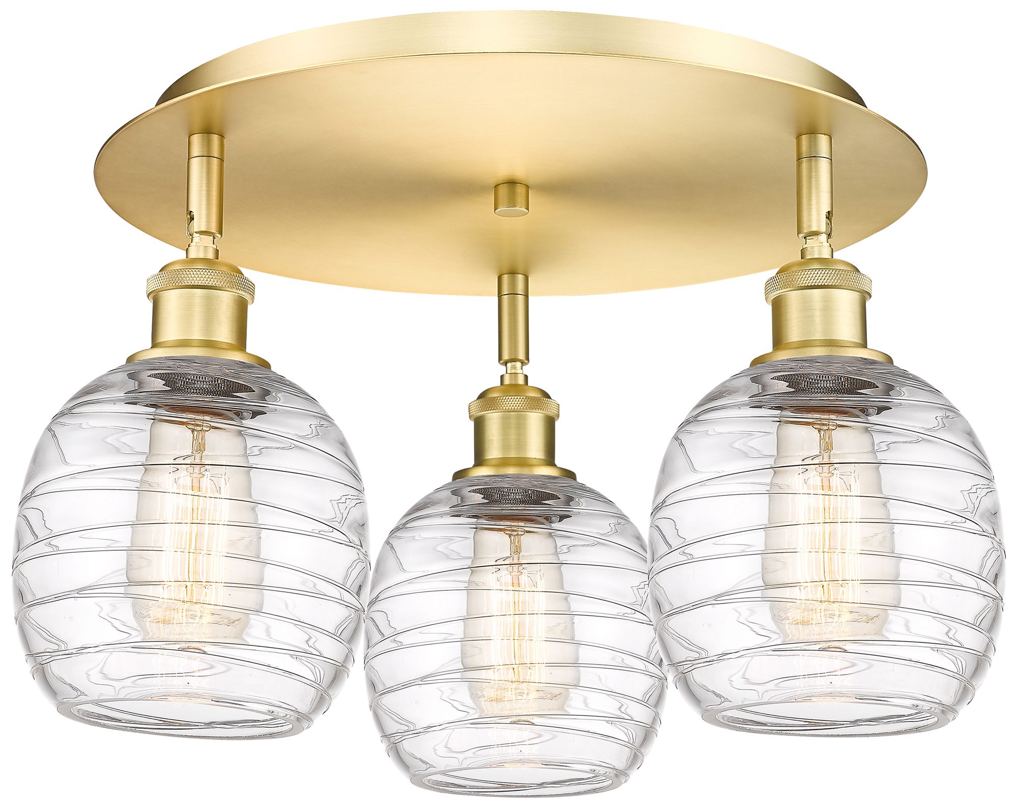 Belfast 17.75"W 3 Light Satin Gold Flush Mount With Deco Swirl Glass S