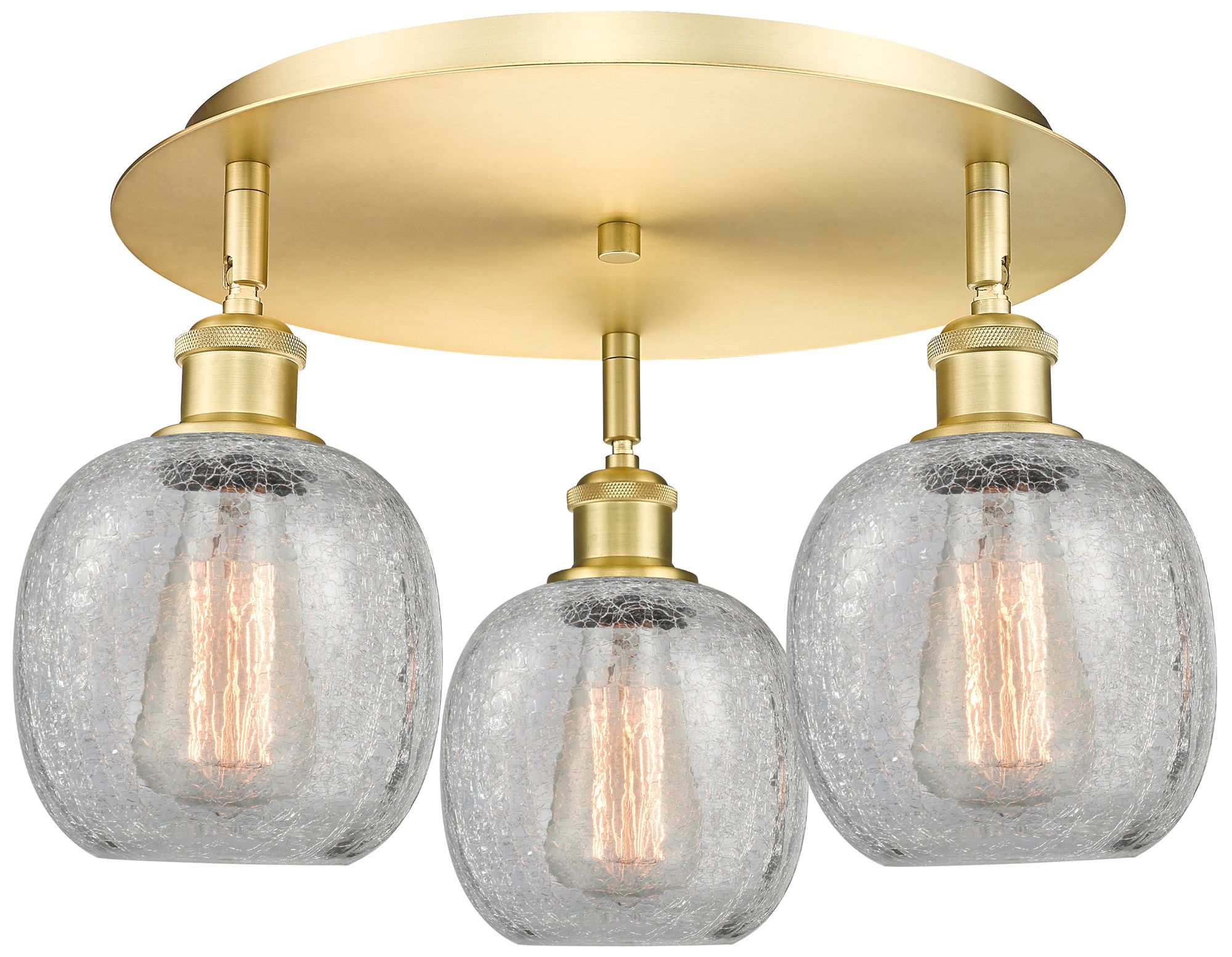 Belfast 17.75"W 3 Light Satin Gold Flush Mount w/ Clear Crackle Glass