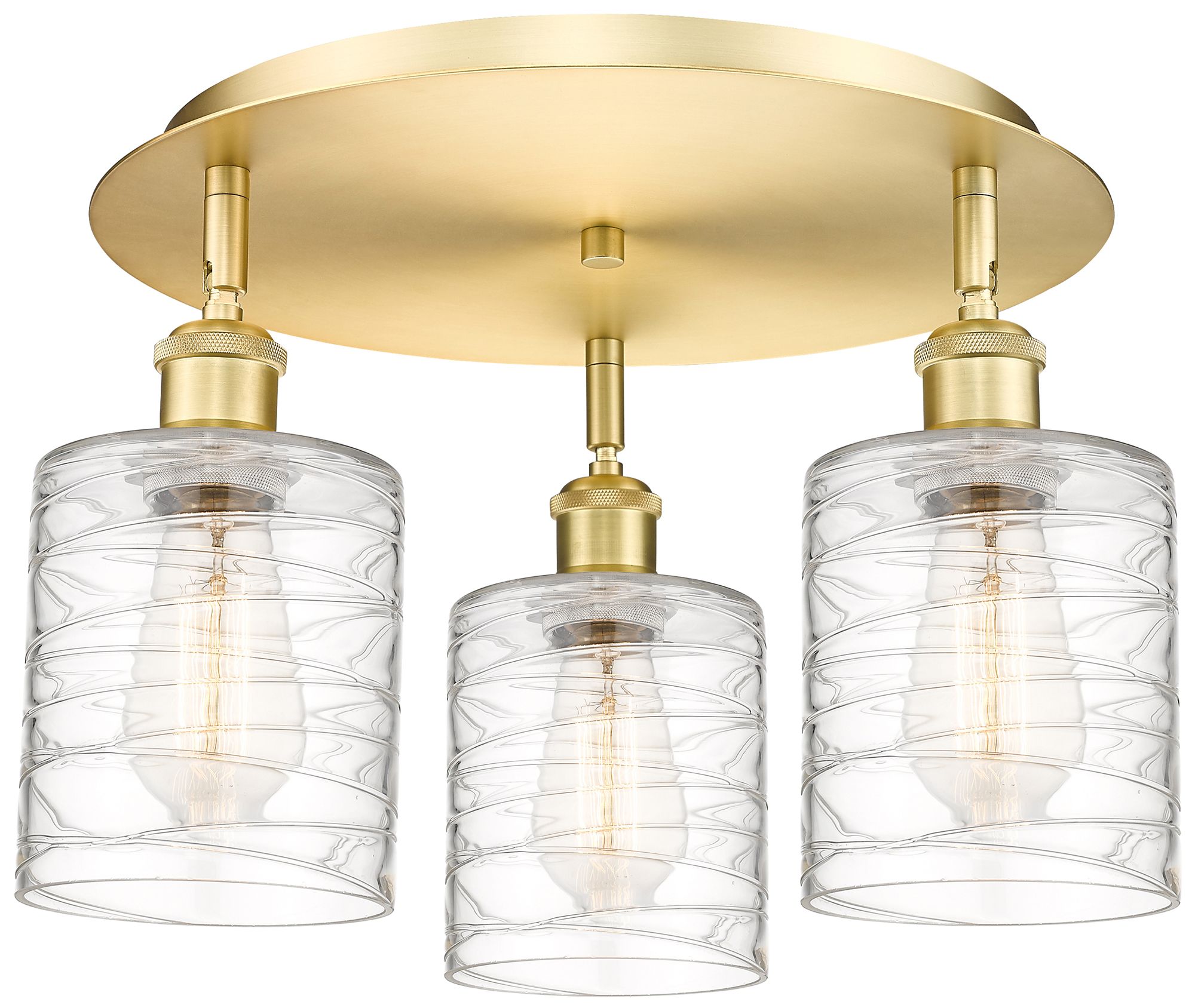 Cobbleskill 17.75"W 3 Light Satin Gold Flush Mount w/ Deco Swirl Shade