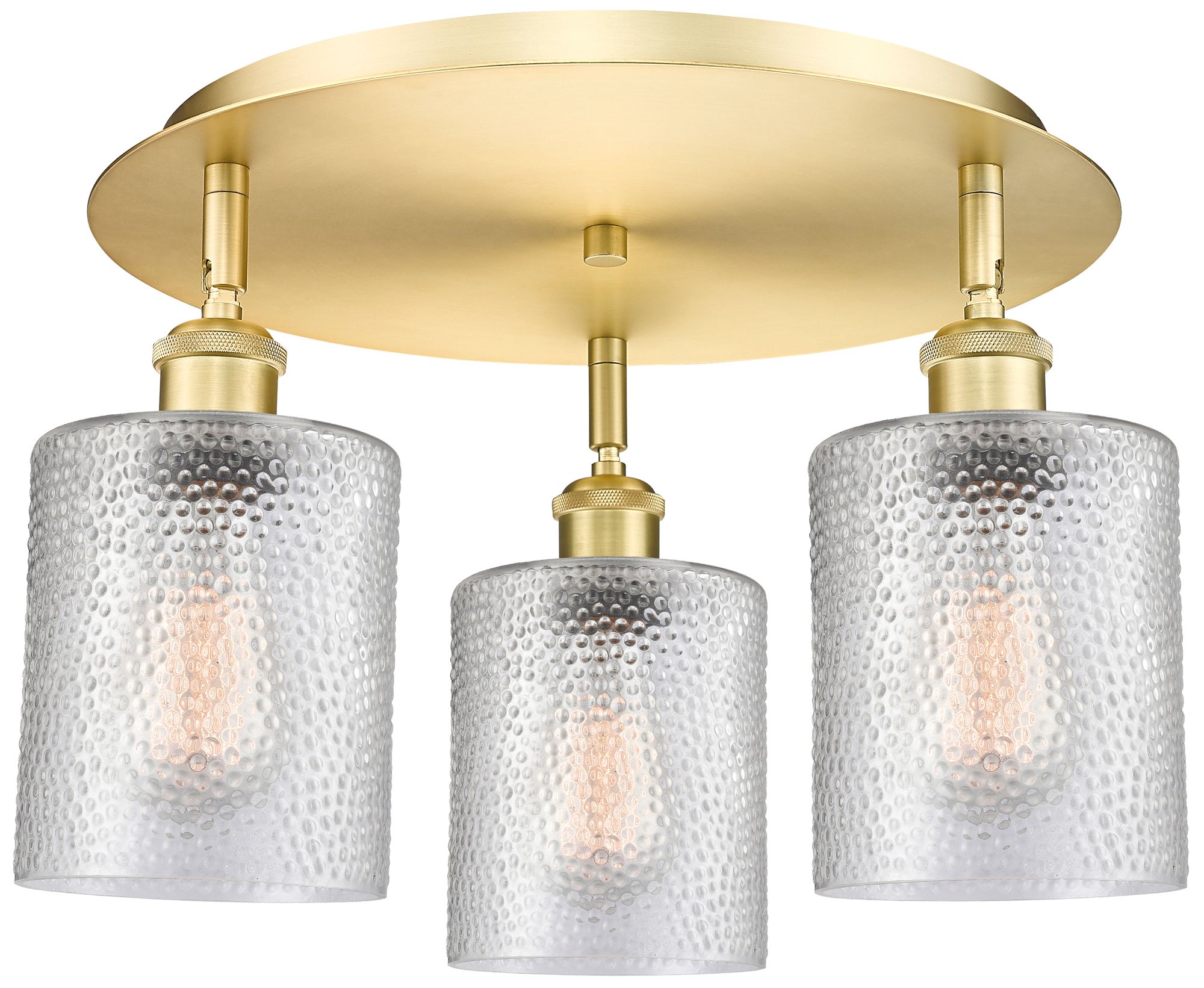 Cobbleskill 17.75"W 3 Light Satin Gold Flush Mount With Clear Glass Sh