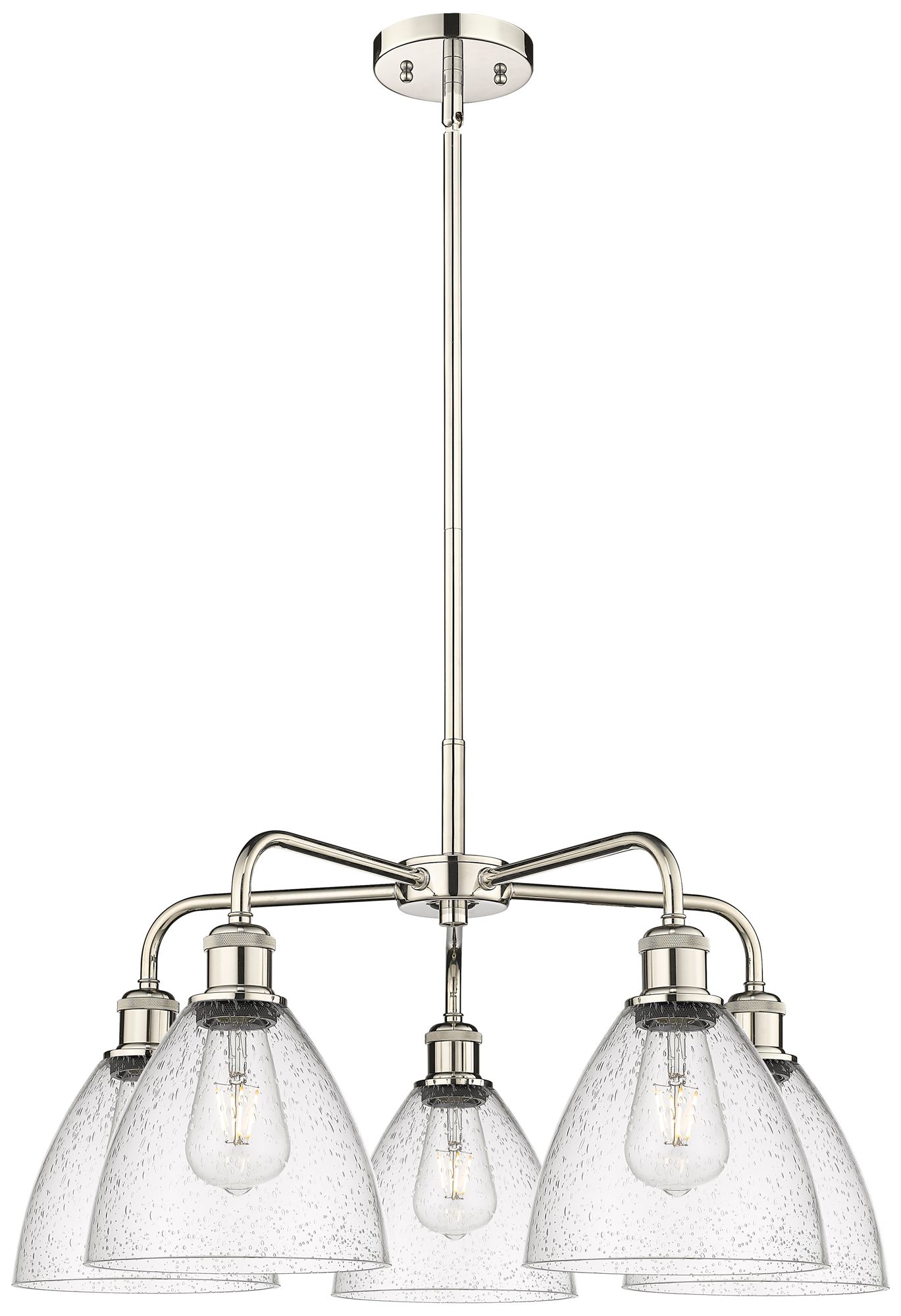 Bristol Glass 25.5"W 5 Light Polished Nickel Stem Chandelier w/ Seedy