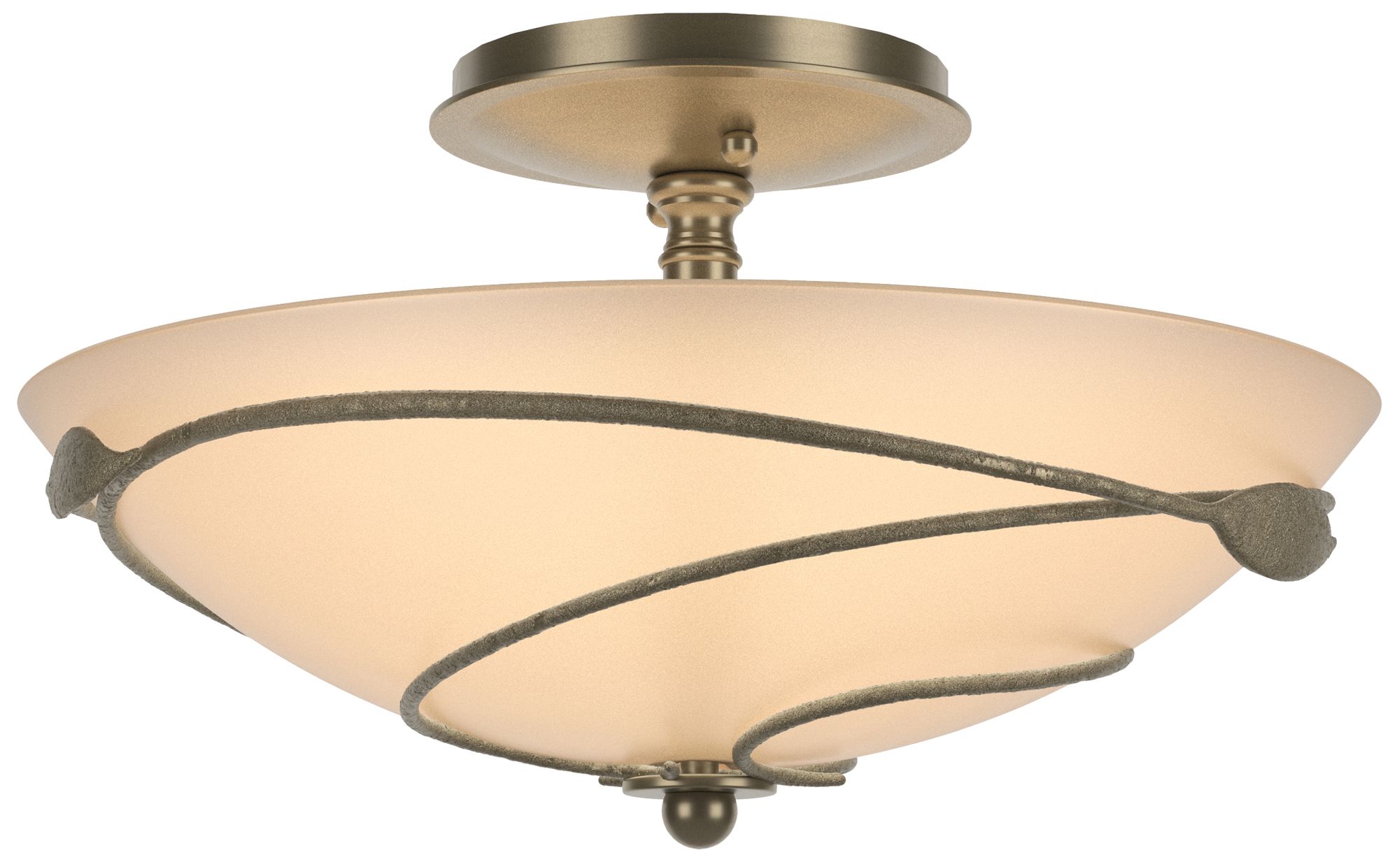 Forged Leaves 13.5" Wide Soft Gold Semi-Flush With Sand Glass Shade
