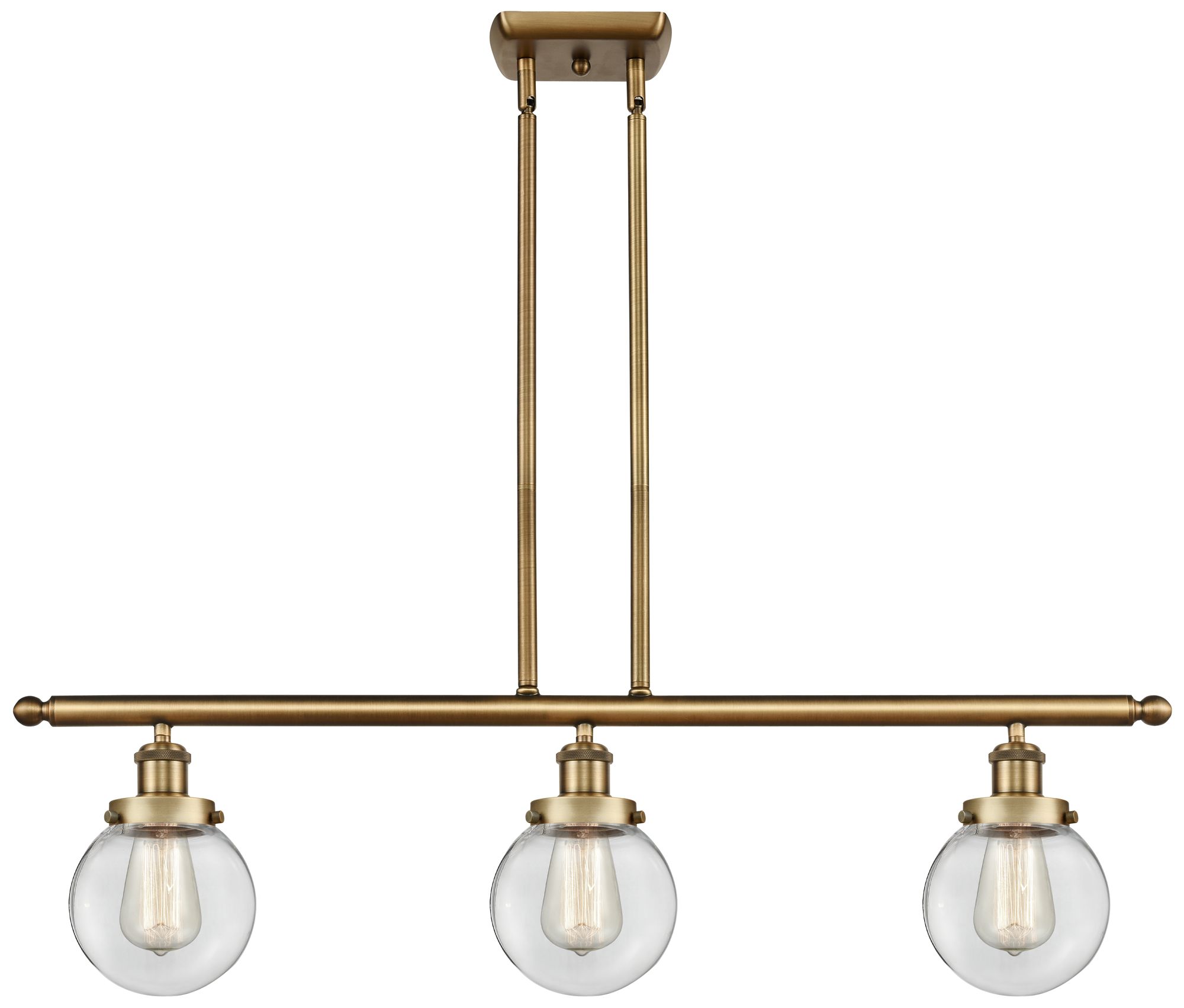 Beacon 36" Wide 3 Light Brushed Brass Stem Hung Island Light w/ Clear