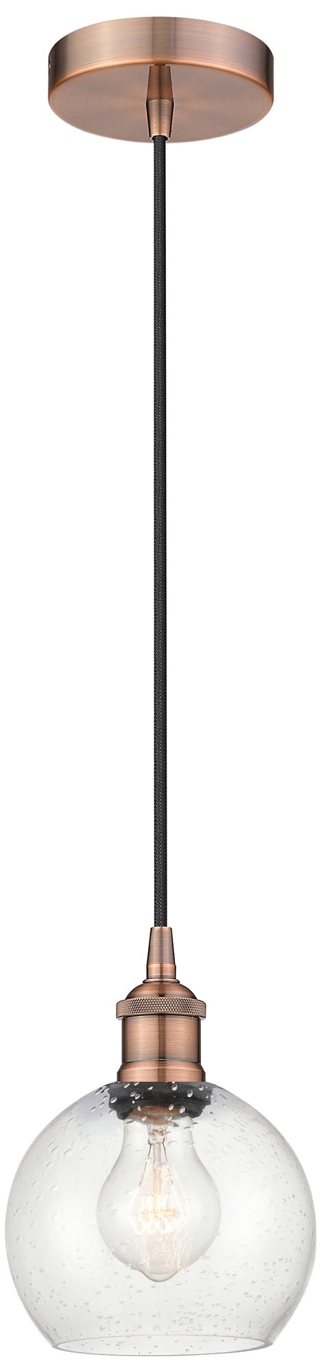 Athens 6" Antique Copper Mini Pendant w/ Seedy Shade