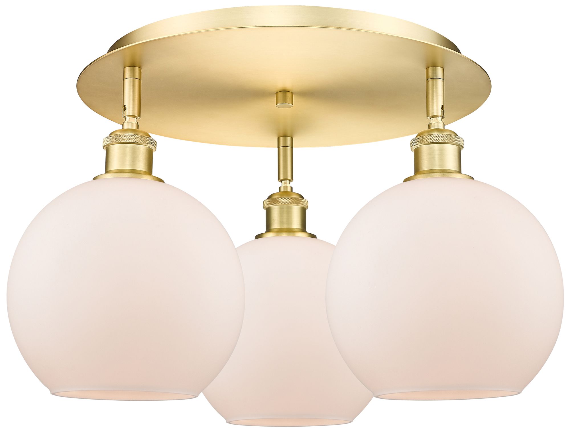 Athens 19.75" Wide 3 Light Satin Gold Flush Mount With Matte White Sha