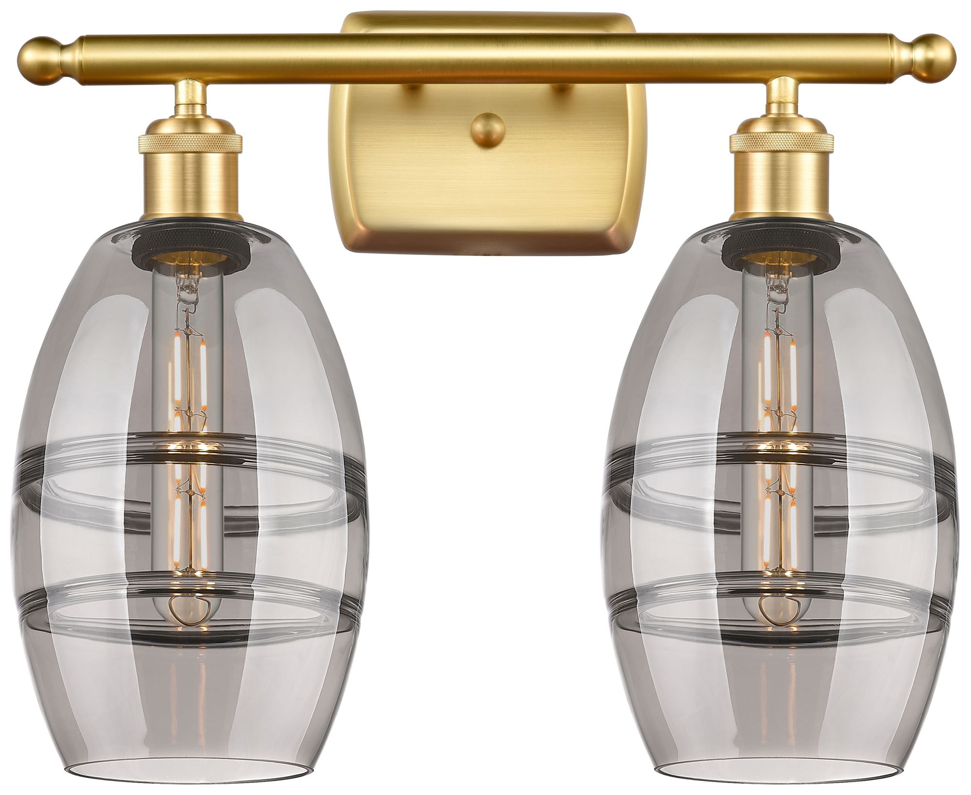Ballston Vaz 15.88" Wide 2 Light Satin Gold Bath Light w/ Light Smoke