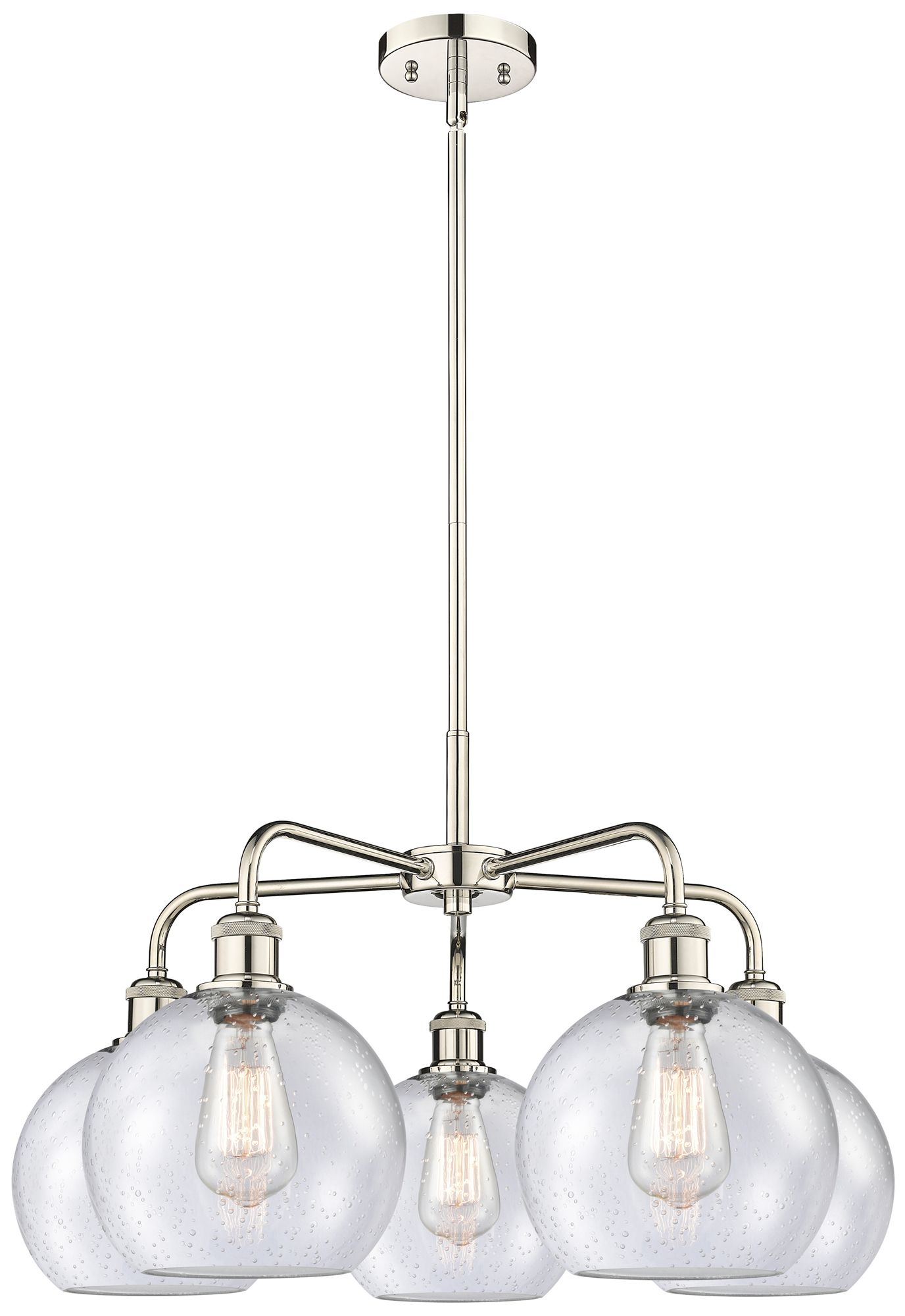 Athens 26"W 5 Light Polished Nickel Stem Hung Chandelier With Seedy Sh