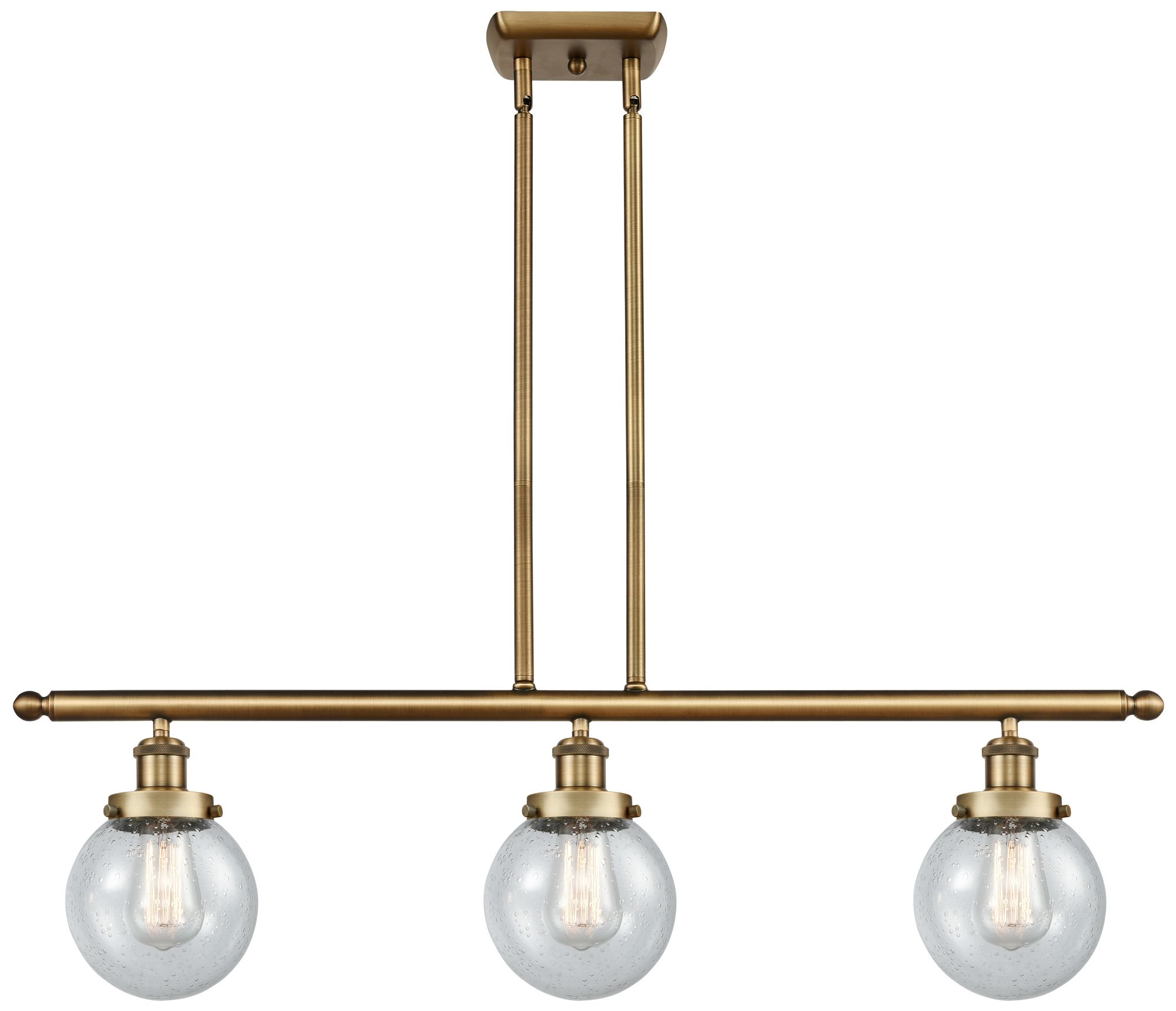 Beacon 36" Wide 3 Light Brushed Brass Stem Hung Island Light w/ Seedy