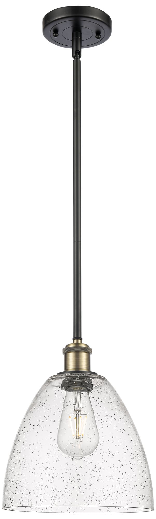 Bristol Glass 9" Black Antique Brass Mini Pendant w/ Seedy Shade
