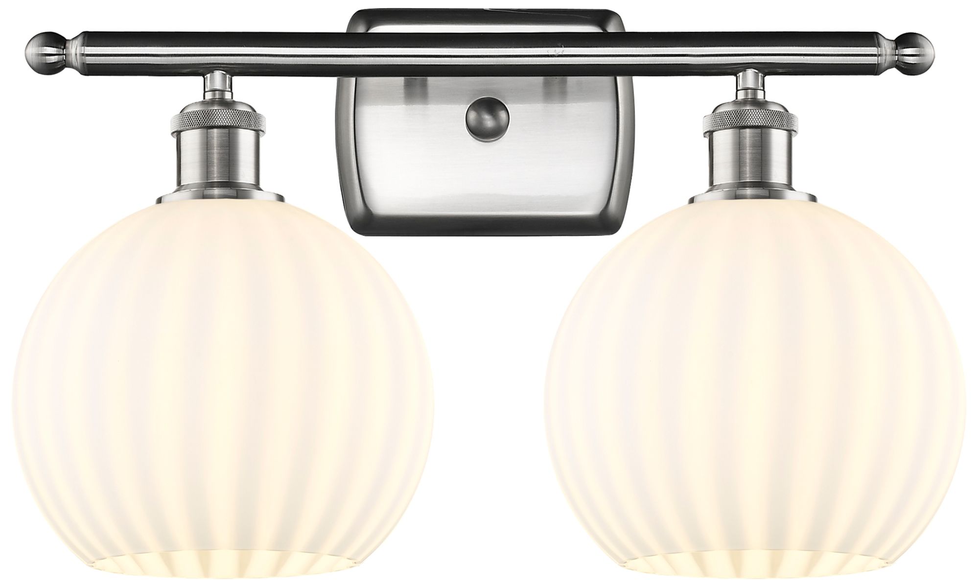 Ballston 18"W 2 Light Satin Nickel Bath Light w/ White Venetian Shade