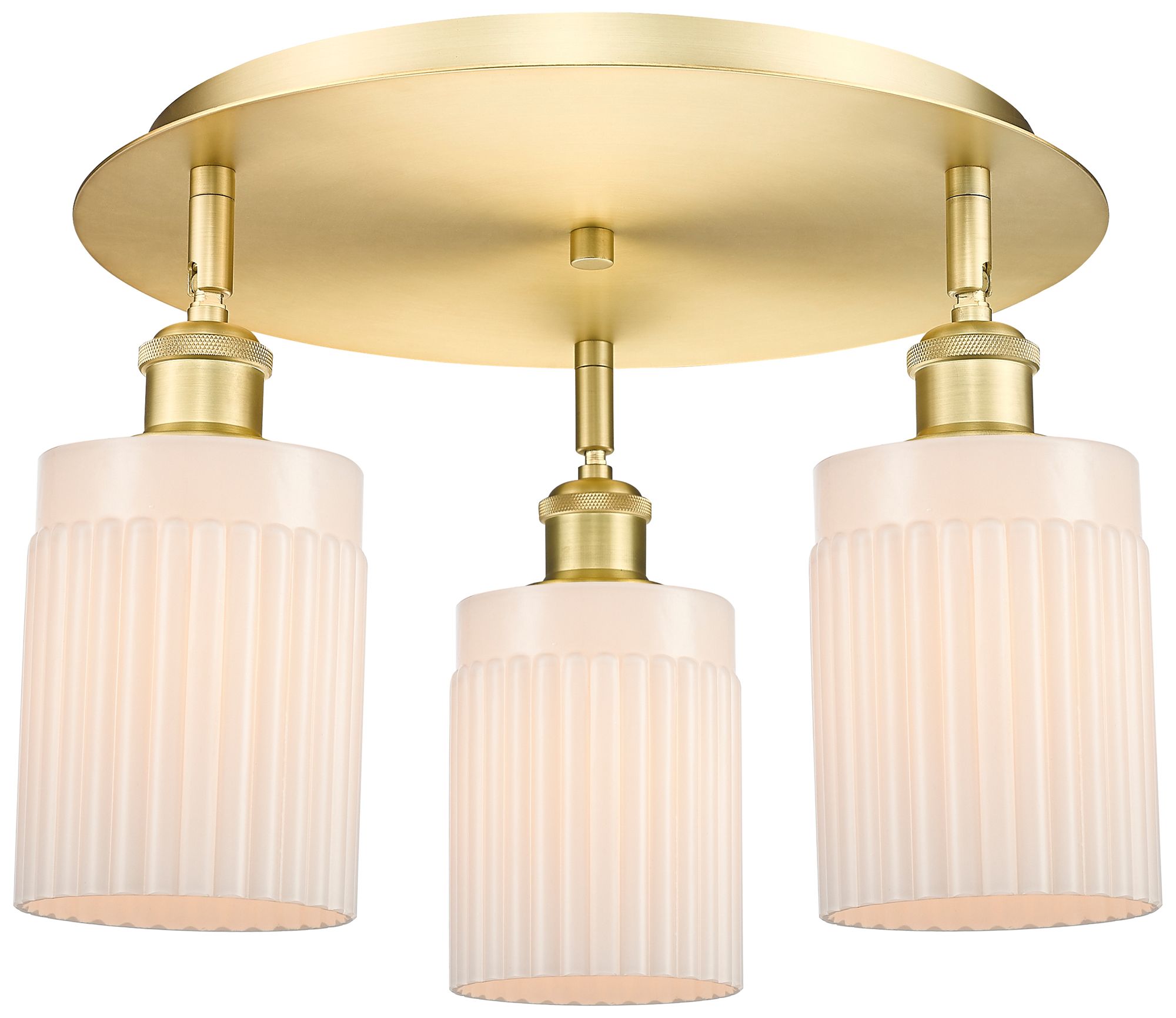 Hadley 16.25"W 3 Light Satin Gold Flush Mount With Matte White Glass S