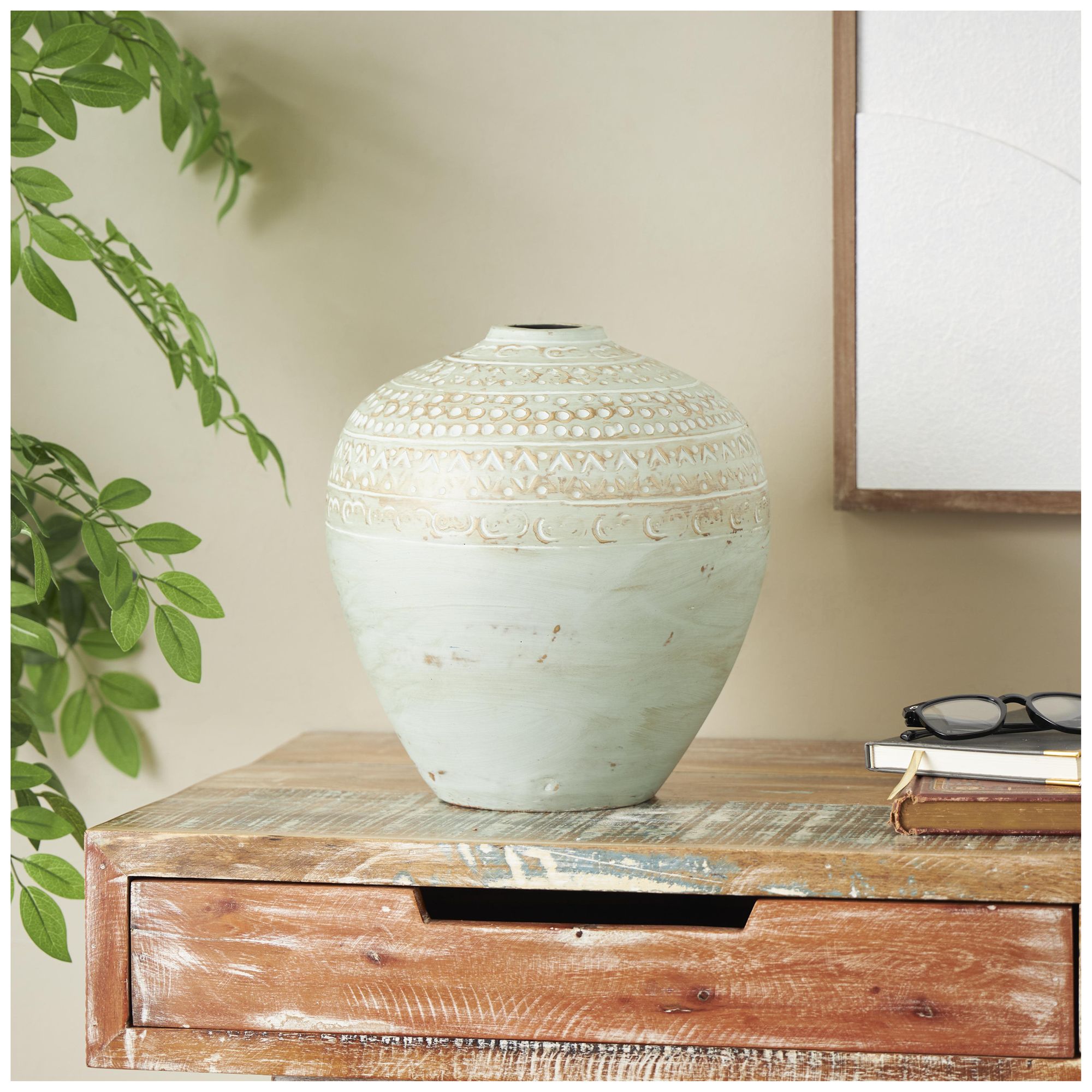 Green Ceramic Farmhouse Vase, 11" x 11" x 12"