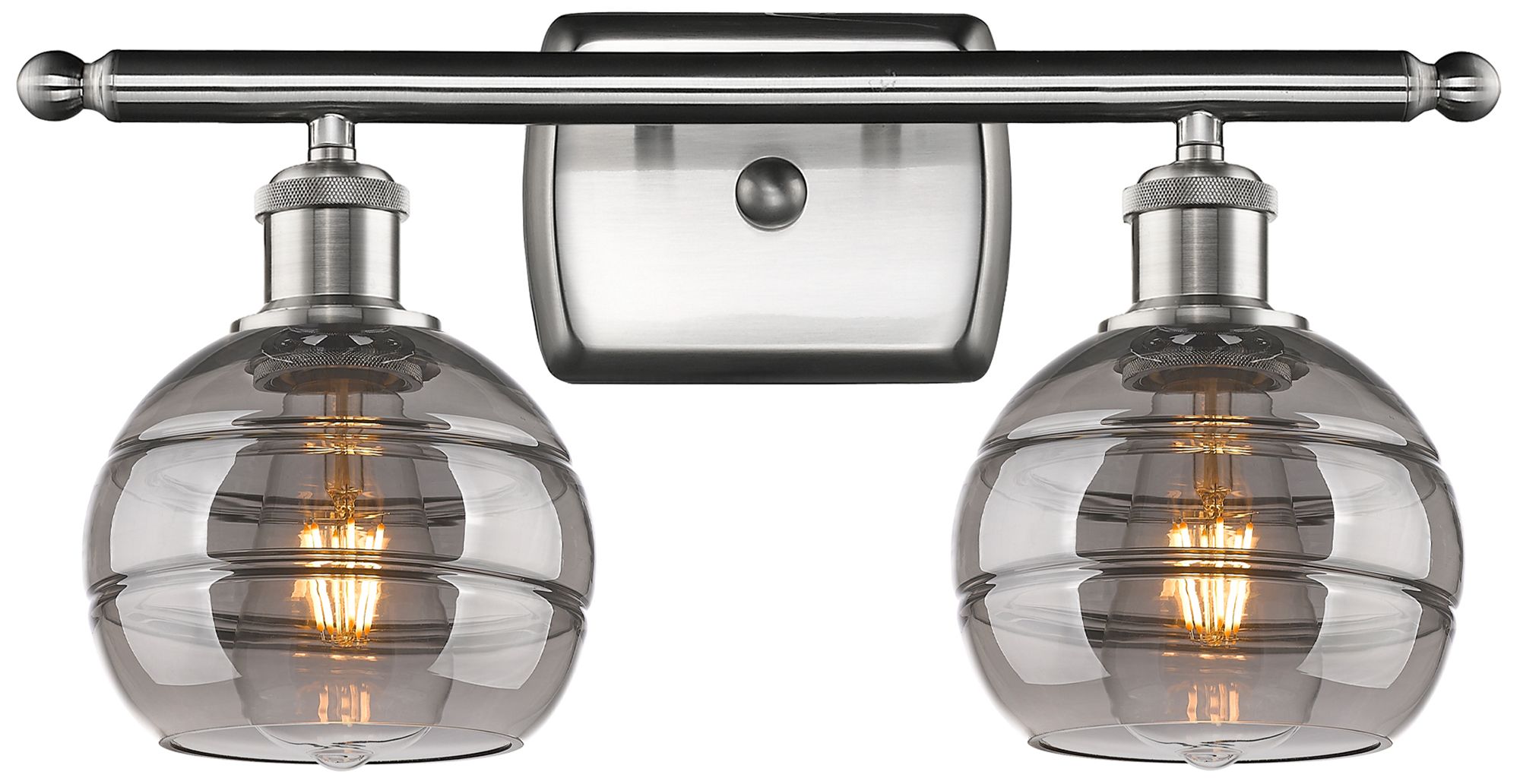 Ballston Rochester 15.88"W 2 Light Satin Nickel Bath Light w/ Smoke Sh
