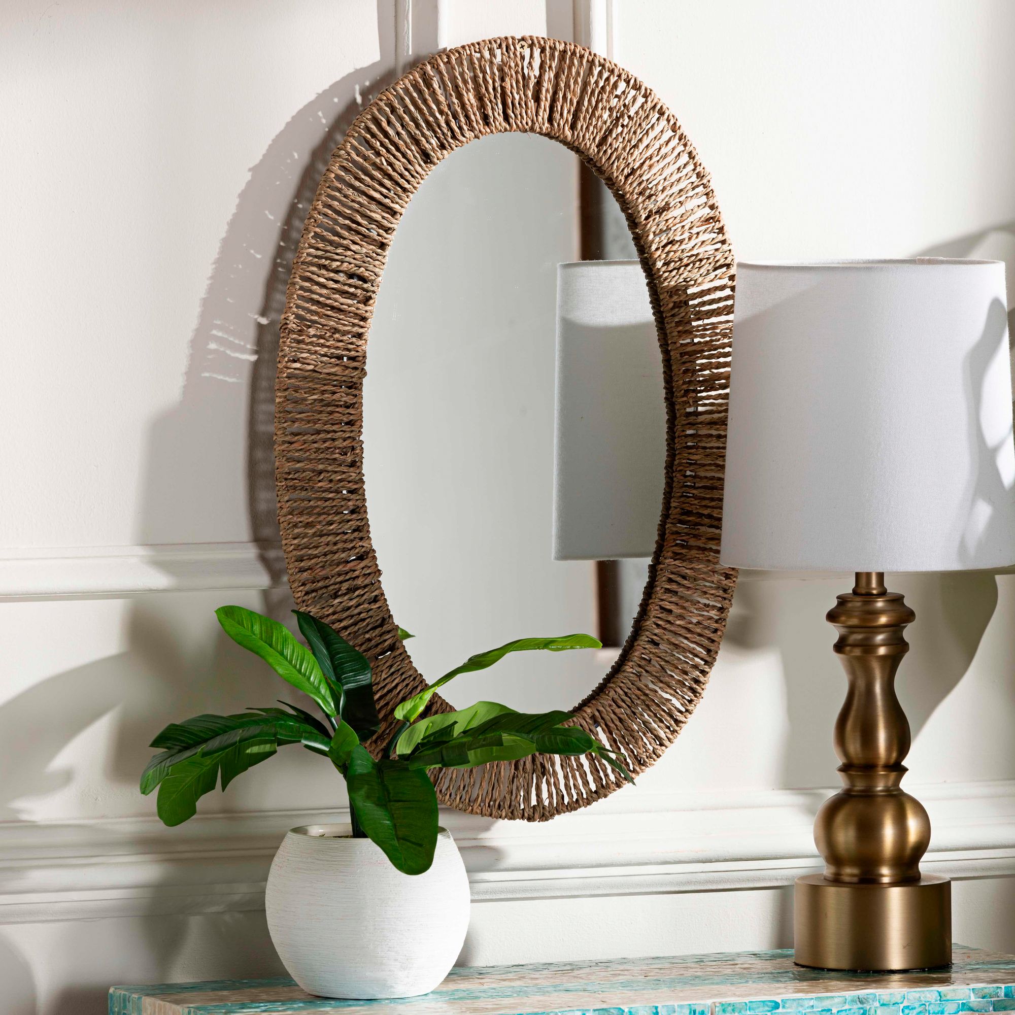 Geona Natural Brown 15 3/4" x 23 1/2" Oval Wall Mirror
