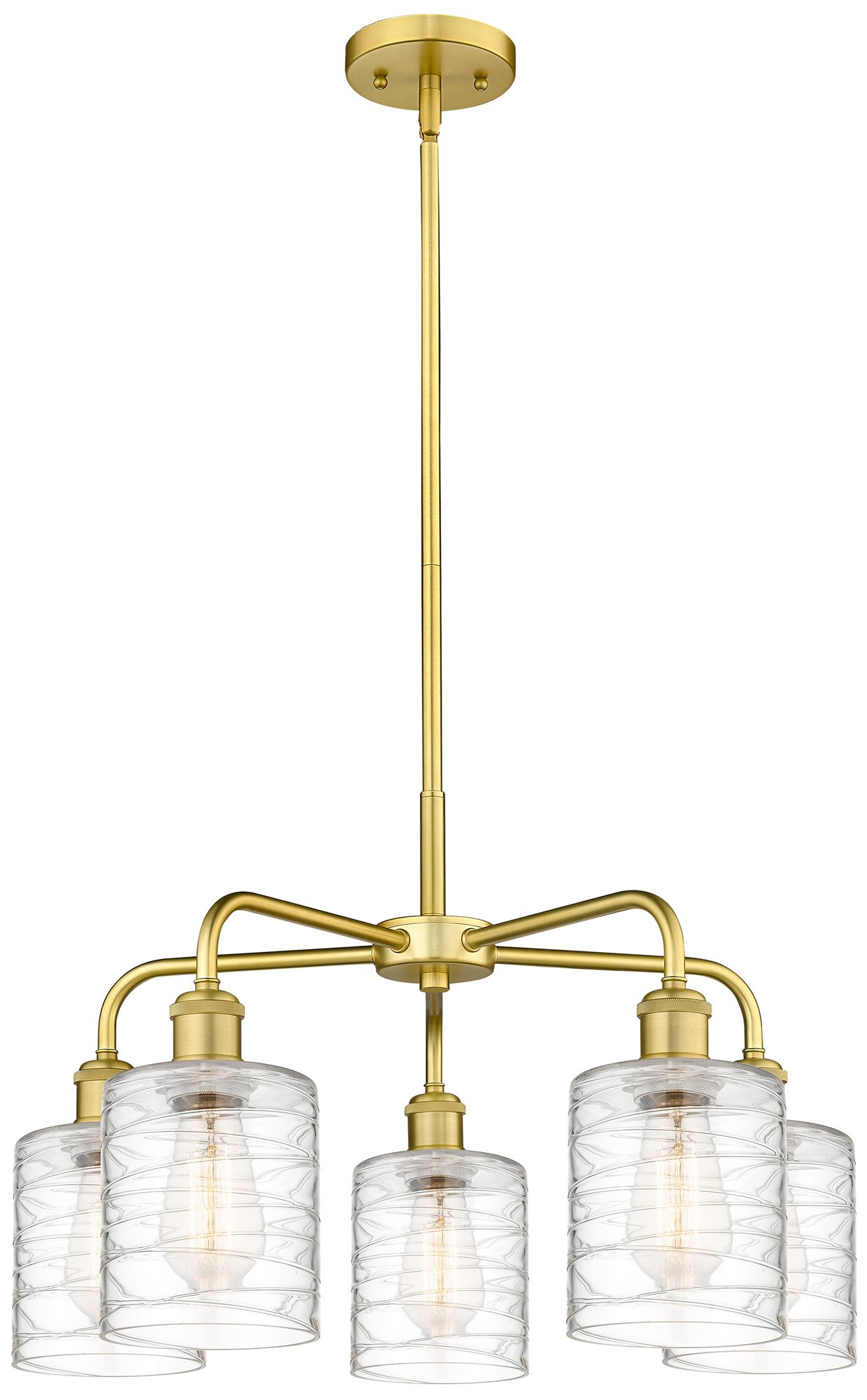 Cobbleskill 23"W 5 Light Satin Gold Stem Chandelier w/ Deco Swirl Shad