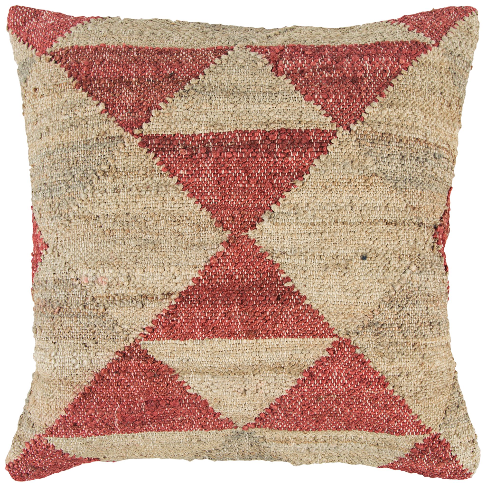 Natural and Red Mirrored Triangles 20" Square Throw Pillow