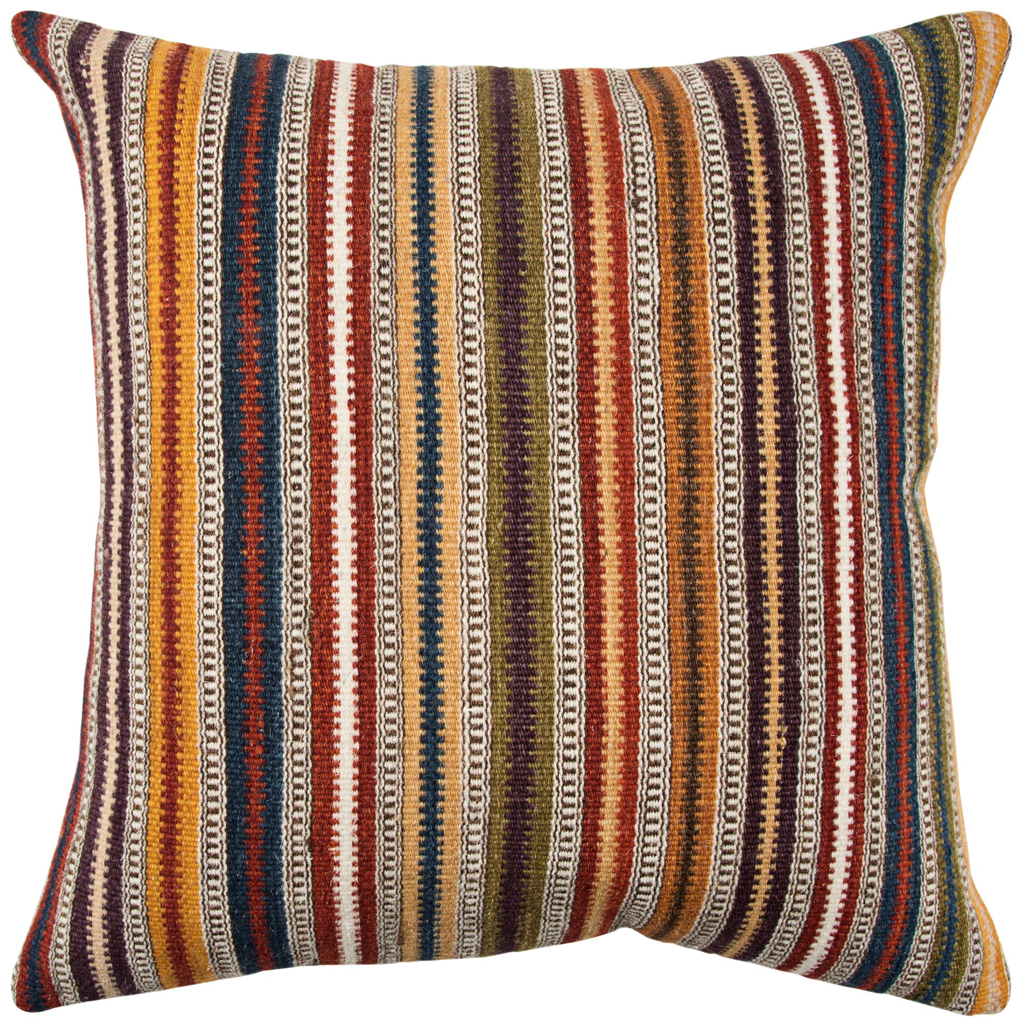 Orange Multi-Color Stripes 20" Square Throw Pillow