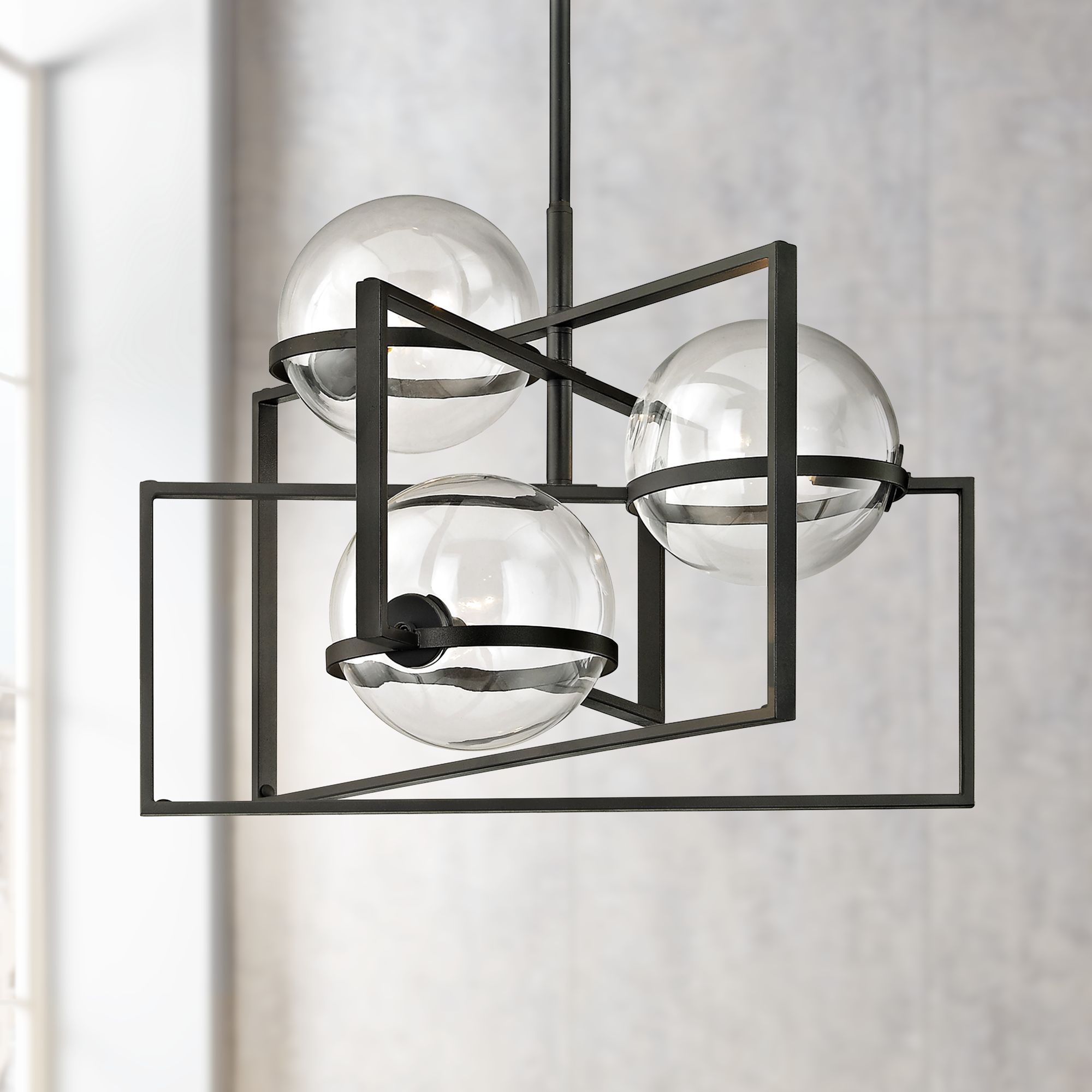 Troy Elliot 25" Wide 3-Light Textured Black Glass Globe Modern Pendant