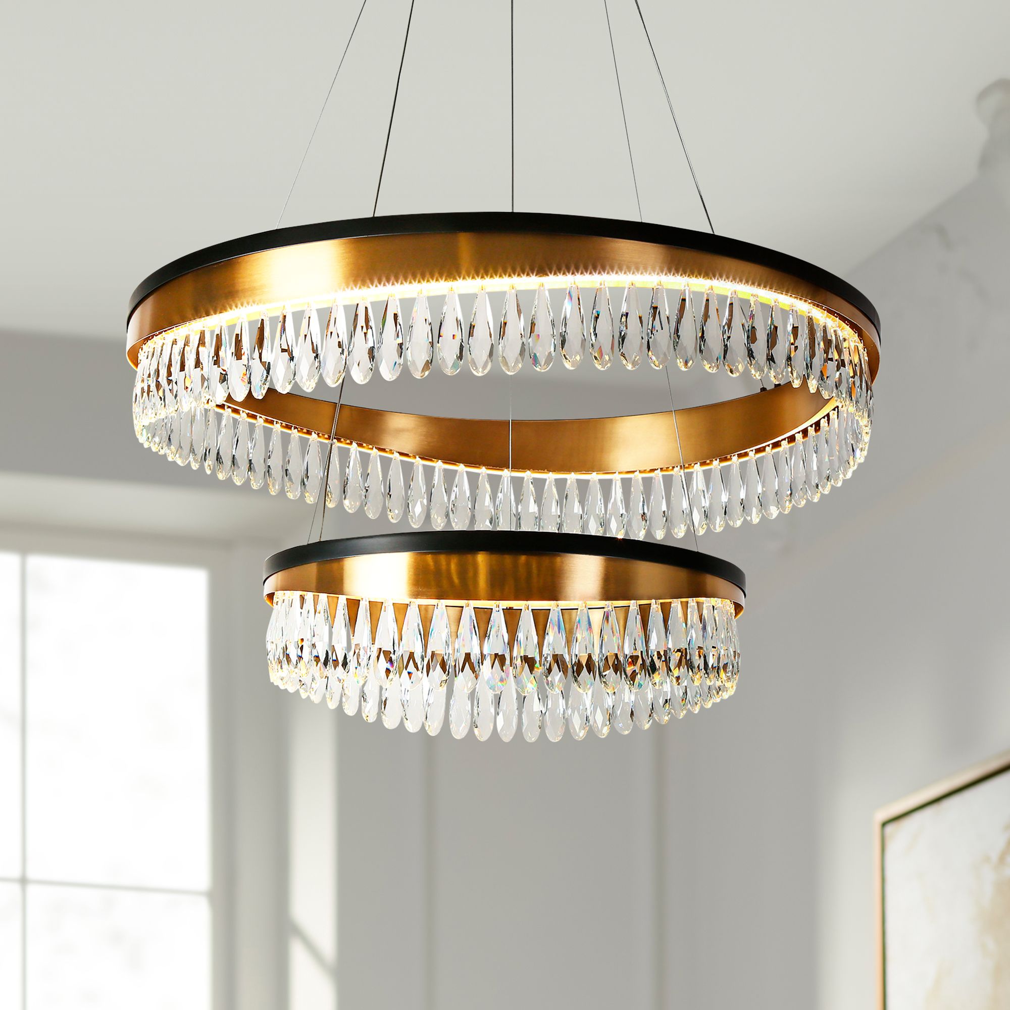 Flamgo 31 1/2" Wide Brass and Crystal 2-Tier LED Chandelier