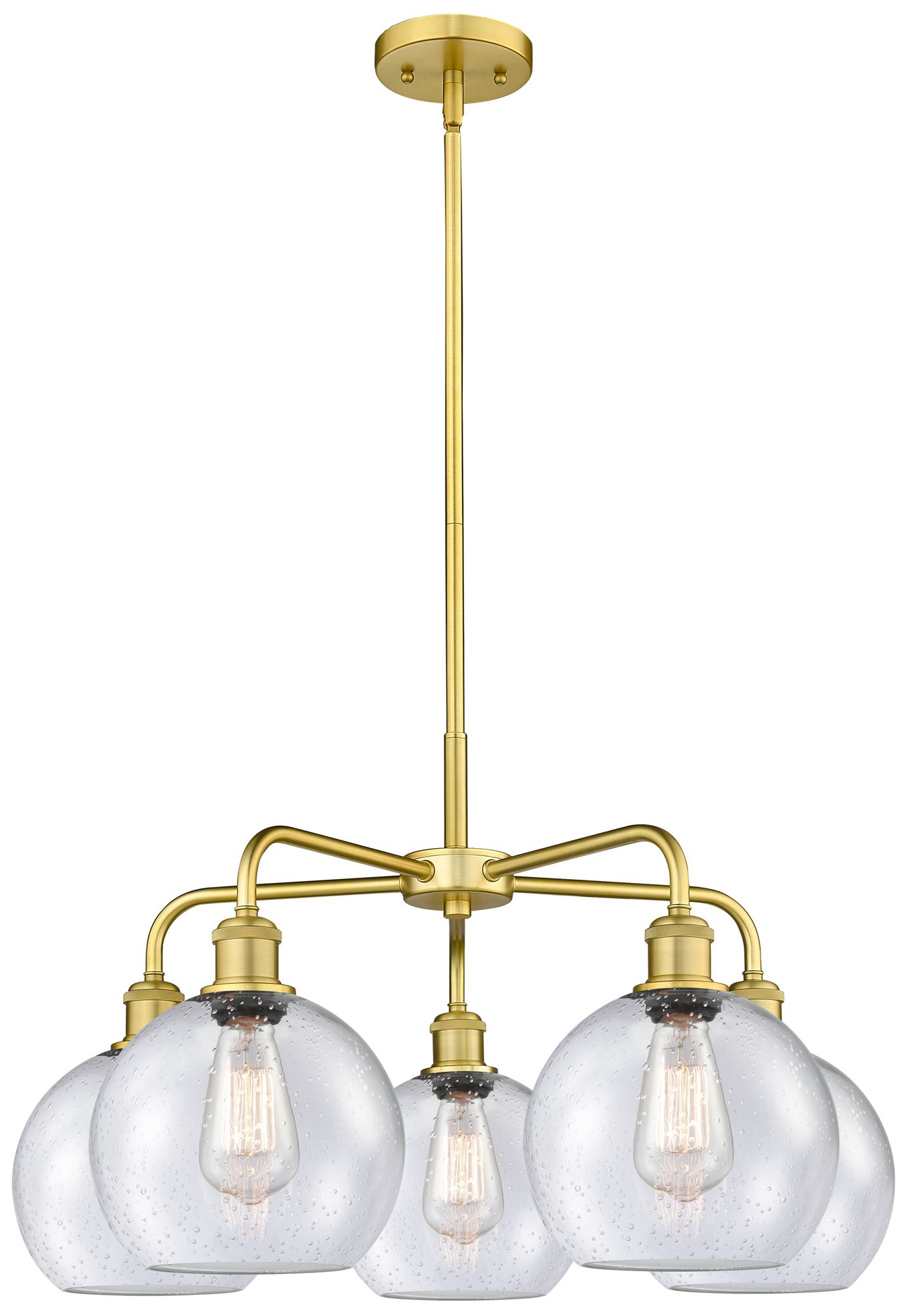 Athens 26" Wide 5 Light Satin Gold Stem Hung Chandelier With Seedy Sha