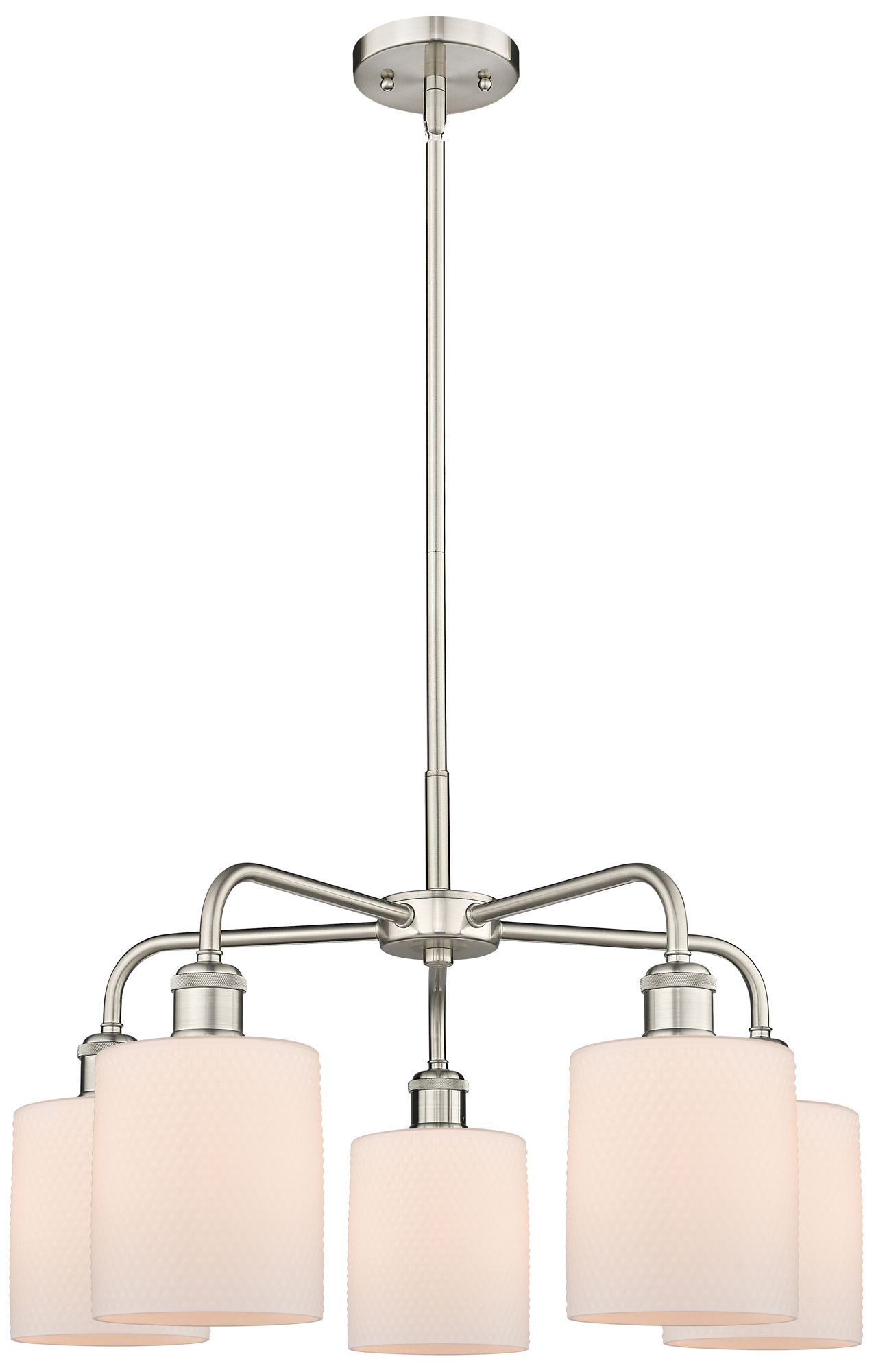 Cobbleskill 23"W 5 Light Satin Nickel Stem Hung Chandelier With White