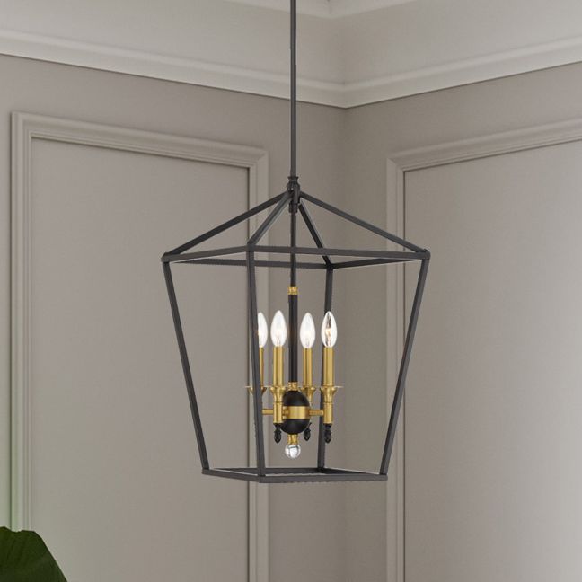 Minka Lavery Townhall 16" Wide 4-Light Coal and Soft Brass Pendant