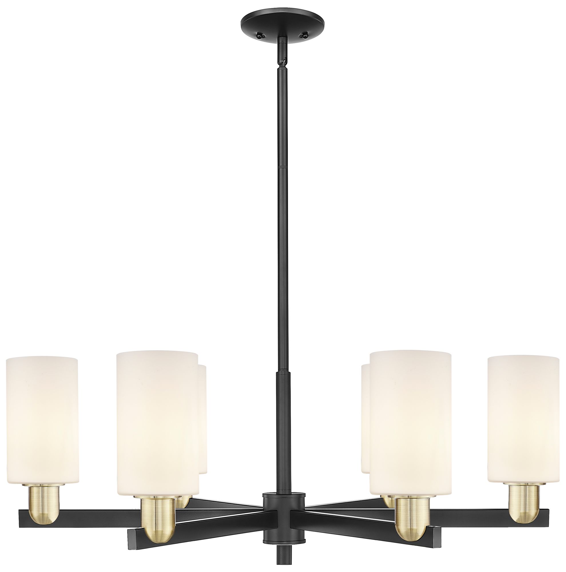 Arcadia Clymer 34"W 6 Light Black Brass Stem Chandelier w/ White Shade