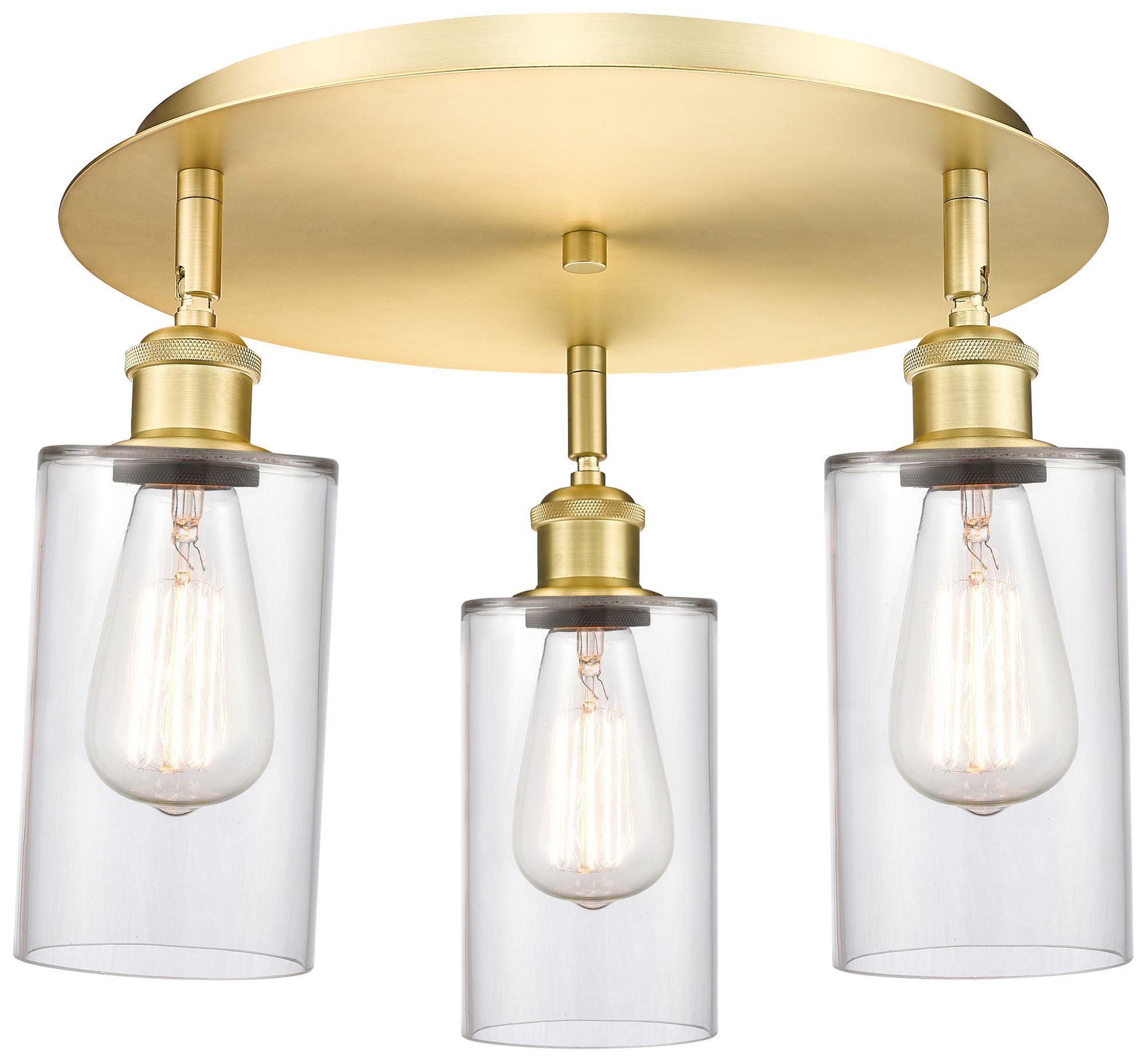 Clymer 15.63" Wide 3 Light Satin Gold Flush Mount With Clear Glass Sha