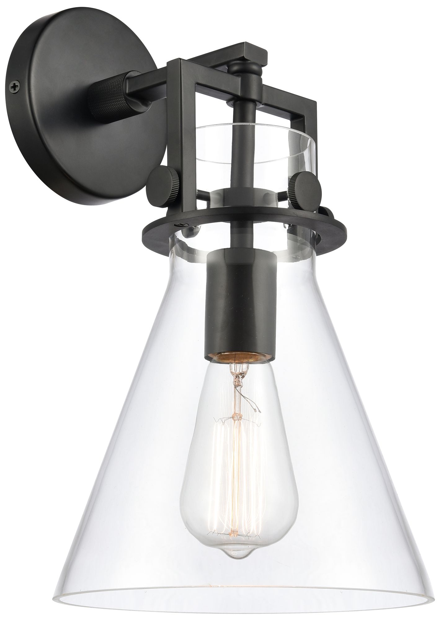 Newton Cone 14" High Matte Black Sconce With Clear Shade