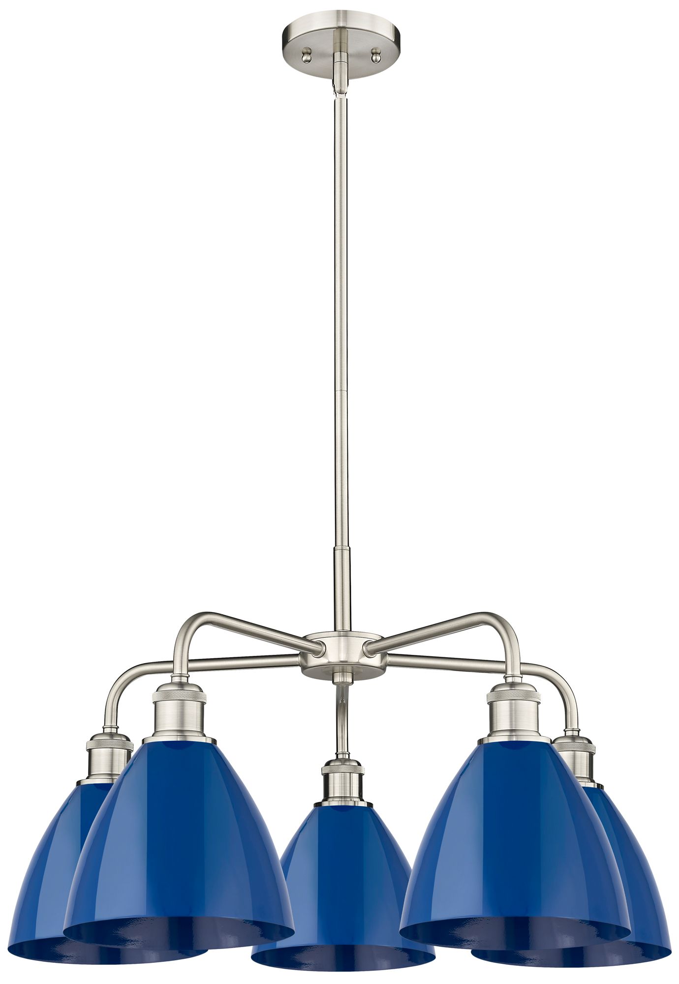 Ballston Dome 25.5"W 5 Light Satin Nickel Stem Chandelier w/ Blue Shad